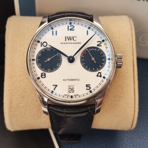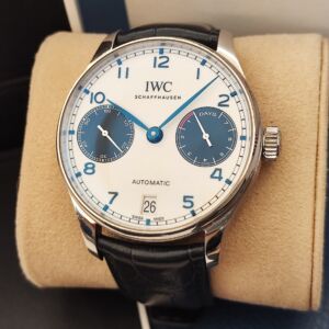 萬國 IWC 葡萄牙 七日鍊 大錶徑42mm 白色面盤 藍色錶圈 自動上鍊 動能顯示~原廠盒單 2025