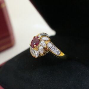 天然 紅寶石1.14克拉 鑲崁 鑽石/梯鑽/水滴鑽 戒台/戒指 18K金