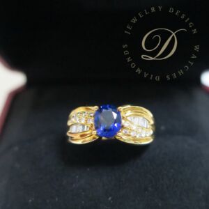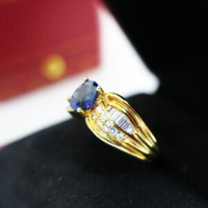 天然 藍寶石1.13克拉 鑲崁 鑽石/梯鑽共重0.45克拉 戒台/戒指 18K金