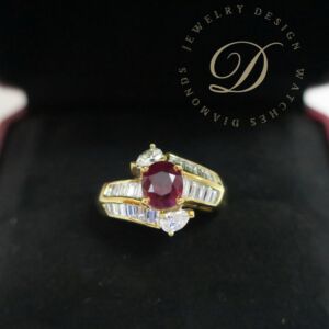 天然 紅寶石1.73克拉 鑲崁 鑽石/梯鑽/馬眼鑽 戒台/戒指 18K金