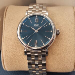 IWC 萬國 PORTOFINO 柏濤菲諾 藍色面盤 錶徑34mm 自動上鍊 刻度鑲鑽~原廠盒單 2025