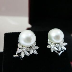 天然鑽石 南洋珍珠耳環 白K金 大直徑10.7mm 鑽石總重80分 優惠出清