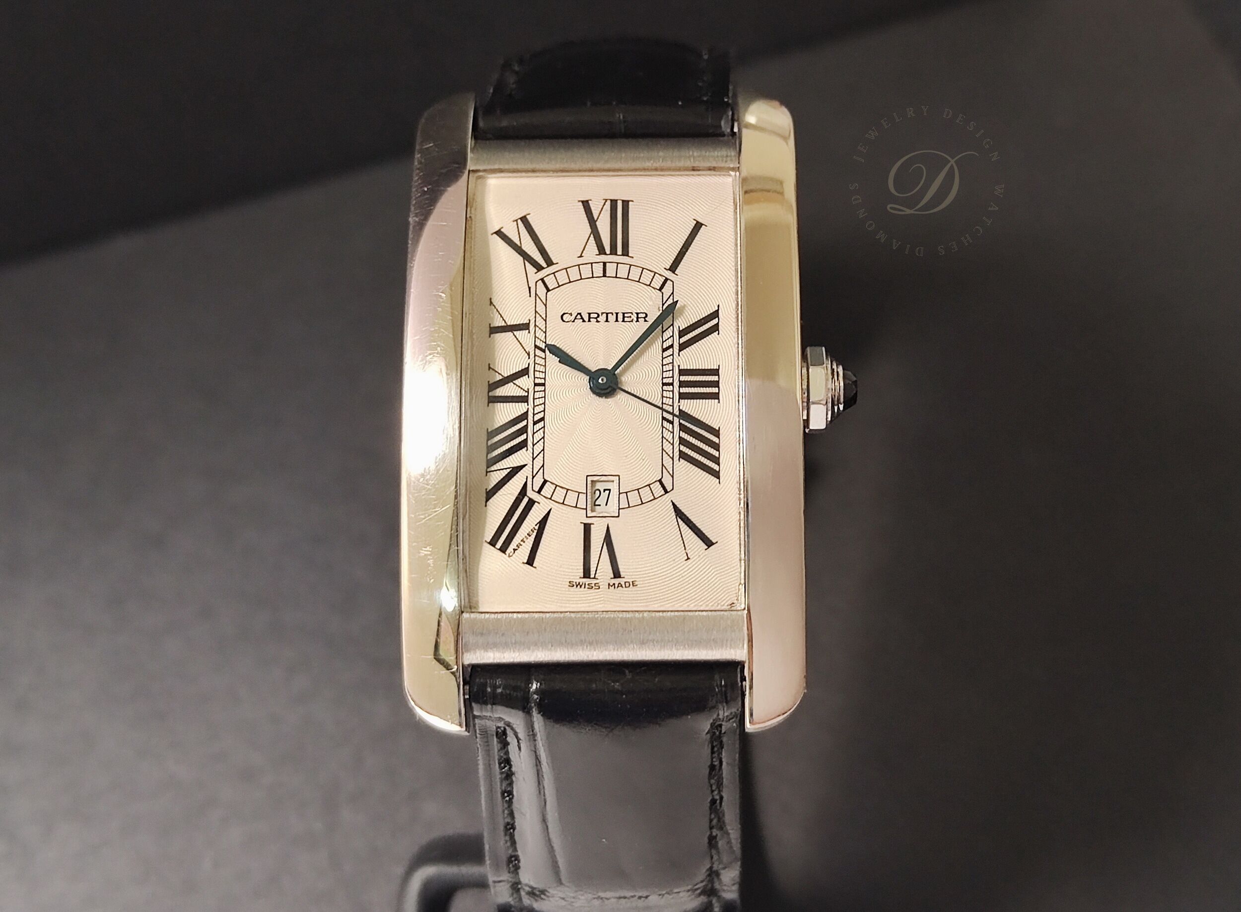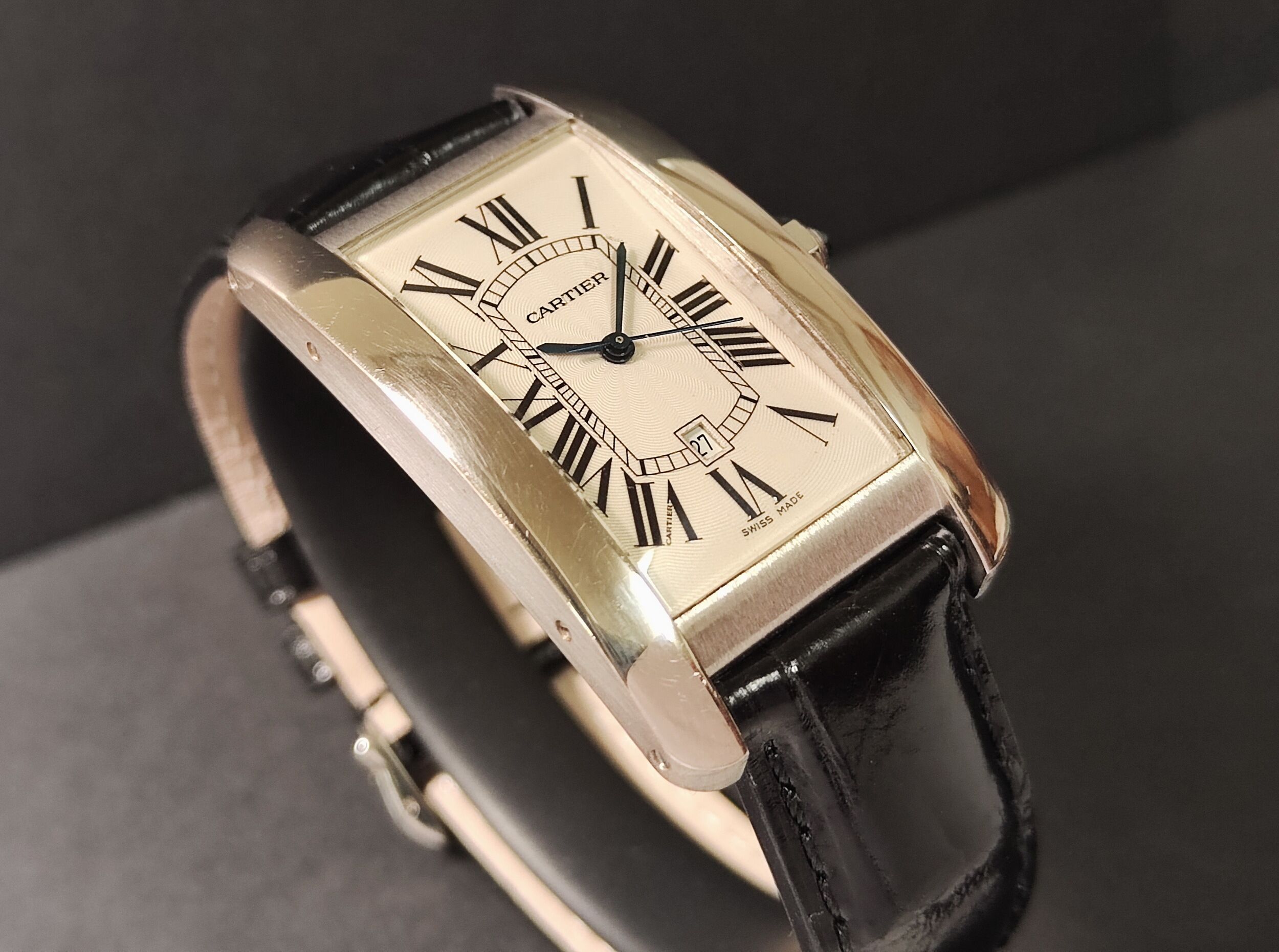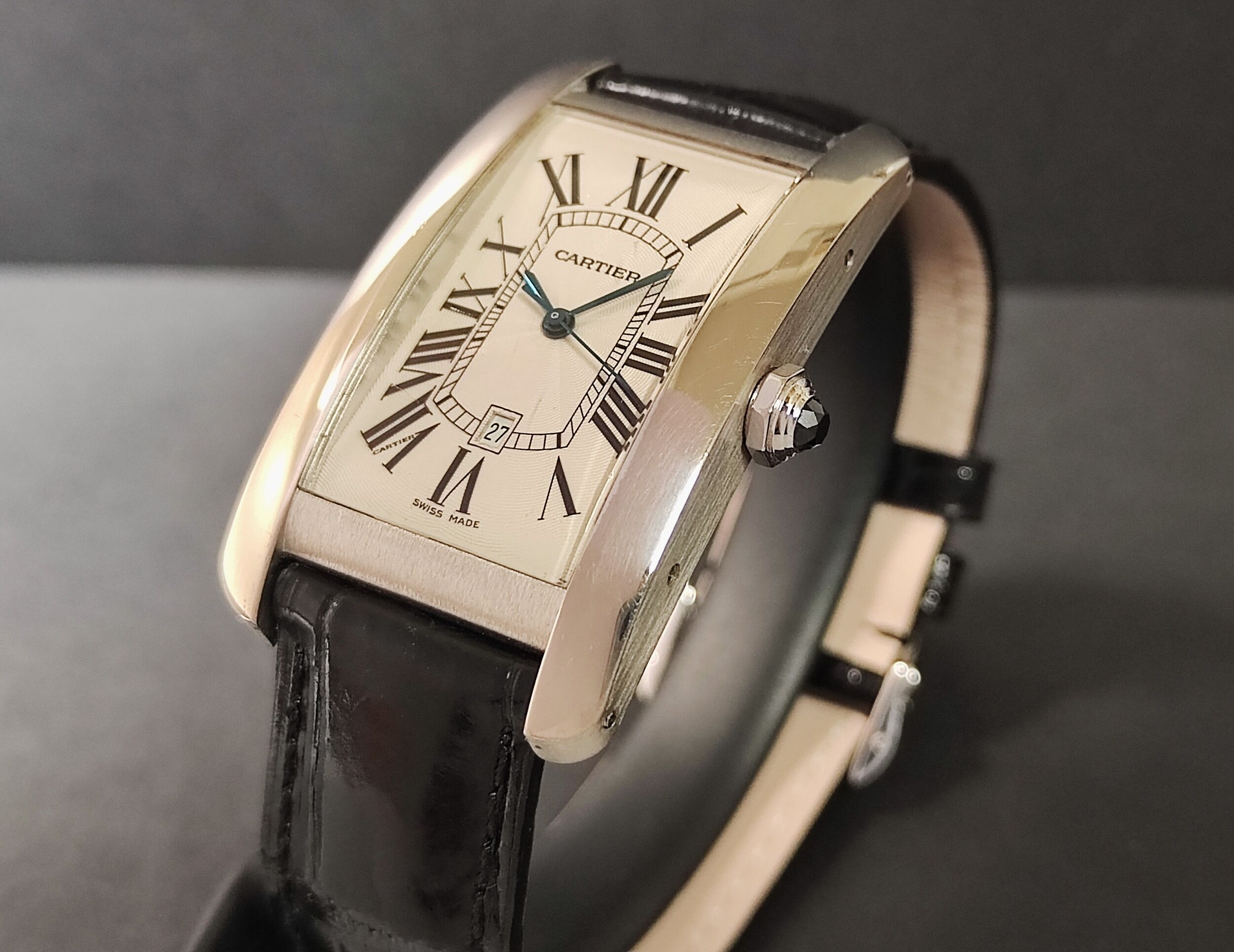 卡地亞 CARTIER 美國坦克 白K金 最大款 自動上鍊 羅馬數字~原廠盒單 Tank Américaine