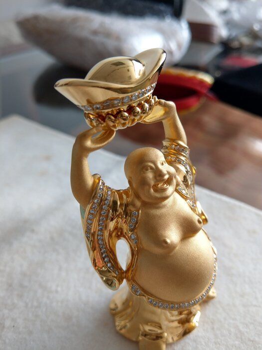 全金 布袋和尚 彌勒佛 彌勒菩薩 招財進寶 鎮店之寶 22K黃金鑲鑽 財元寶