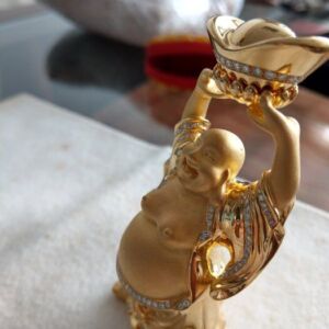 22K黃金材質 袈裟及手捧元寶鑲有鑽石 財源滾滾來