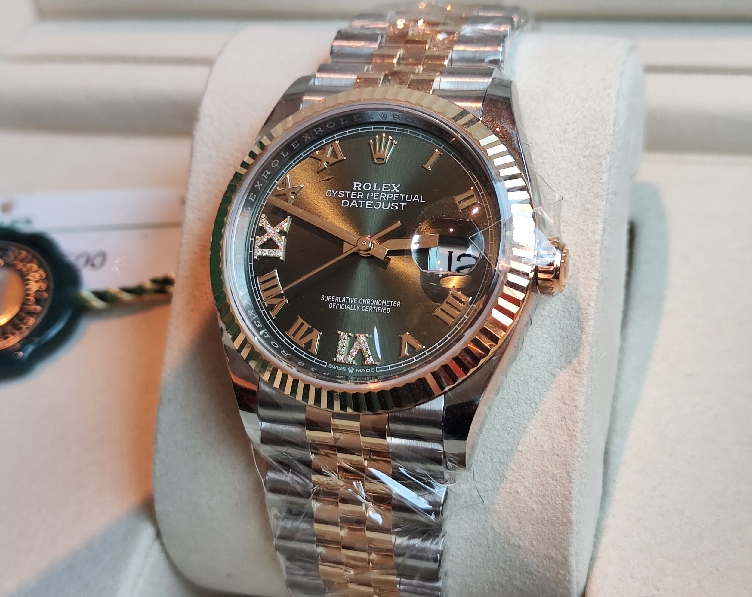 勞力士 全新 126233 半金 橄欖綠面盤 錶徑36mm 原廠鑲鑽刻度 自動上鍊 羅馬數字~原廠盒單 2026最新