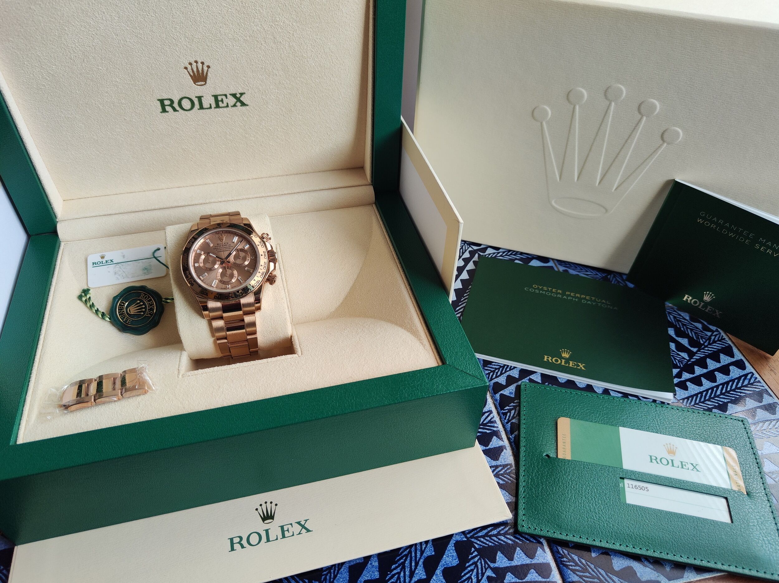 勞力士 116505A 玫瑰金 冰糖 原鑲梯鑽 計時功能 DAYTONA 條鑽刻度~原廠盒單 116505