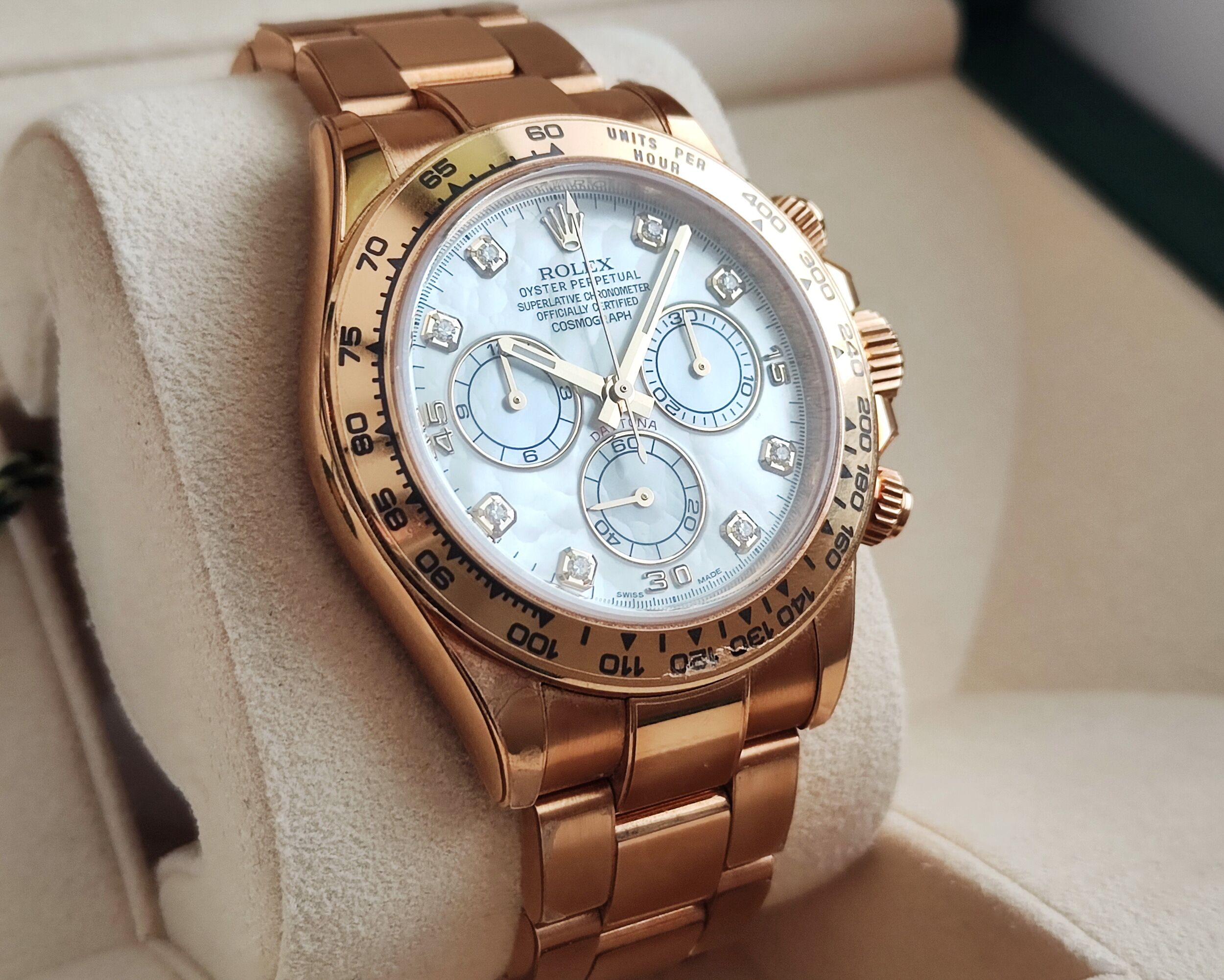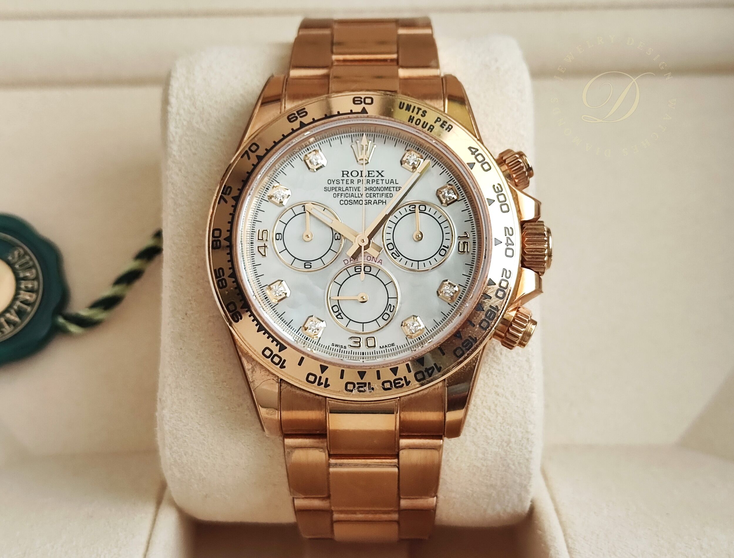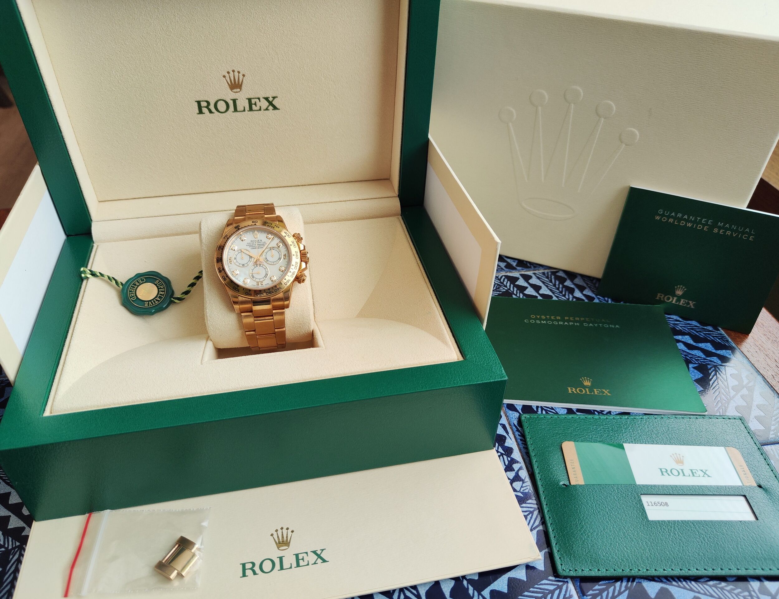 勞力士 116508 黃K金 白色珍珠貝面盤 原鑲鑽 DAYTONA 迪通納 計時功能~原廠盒單