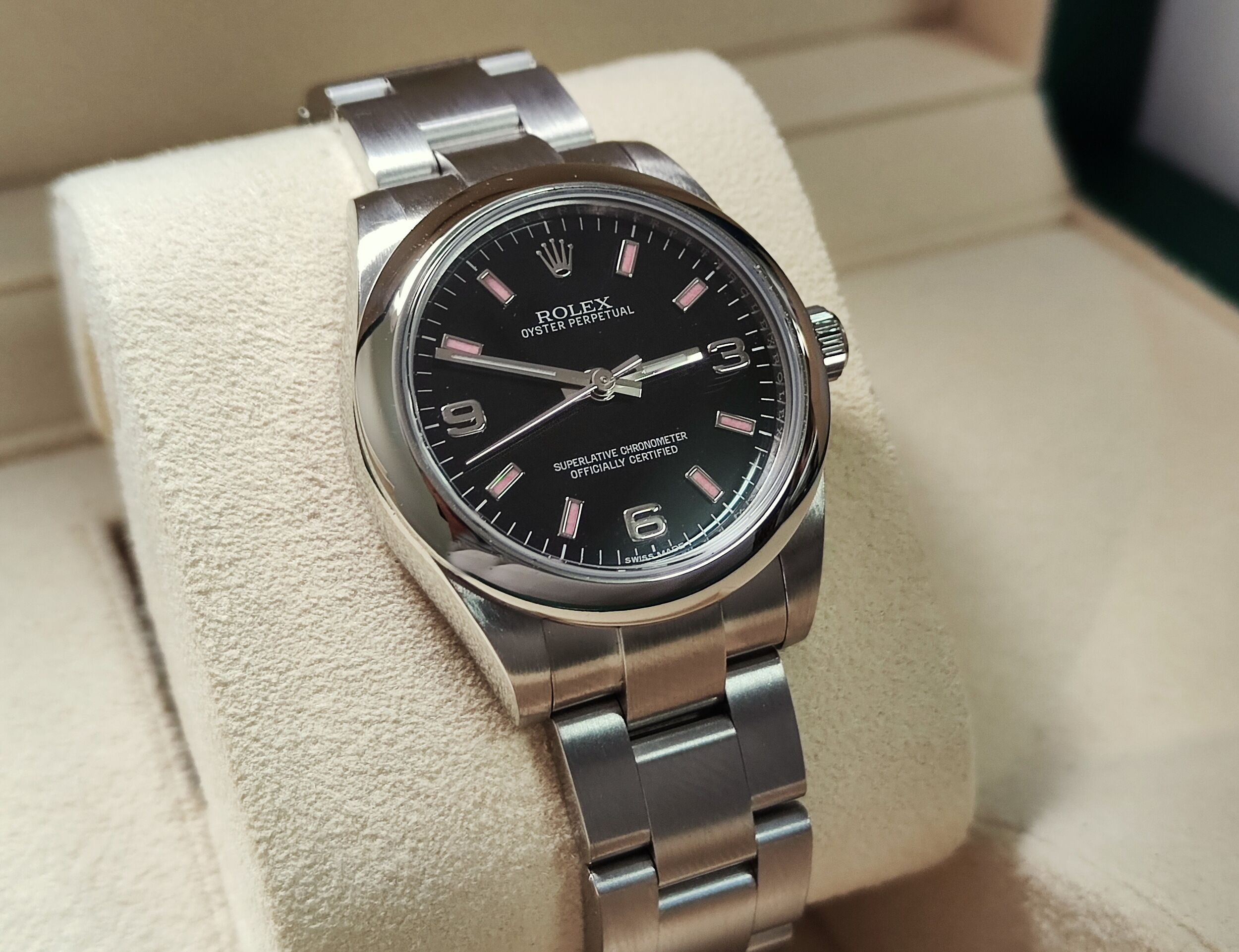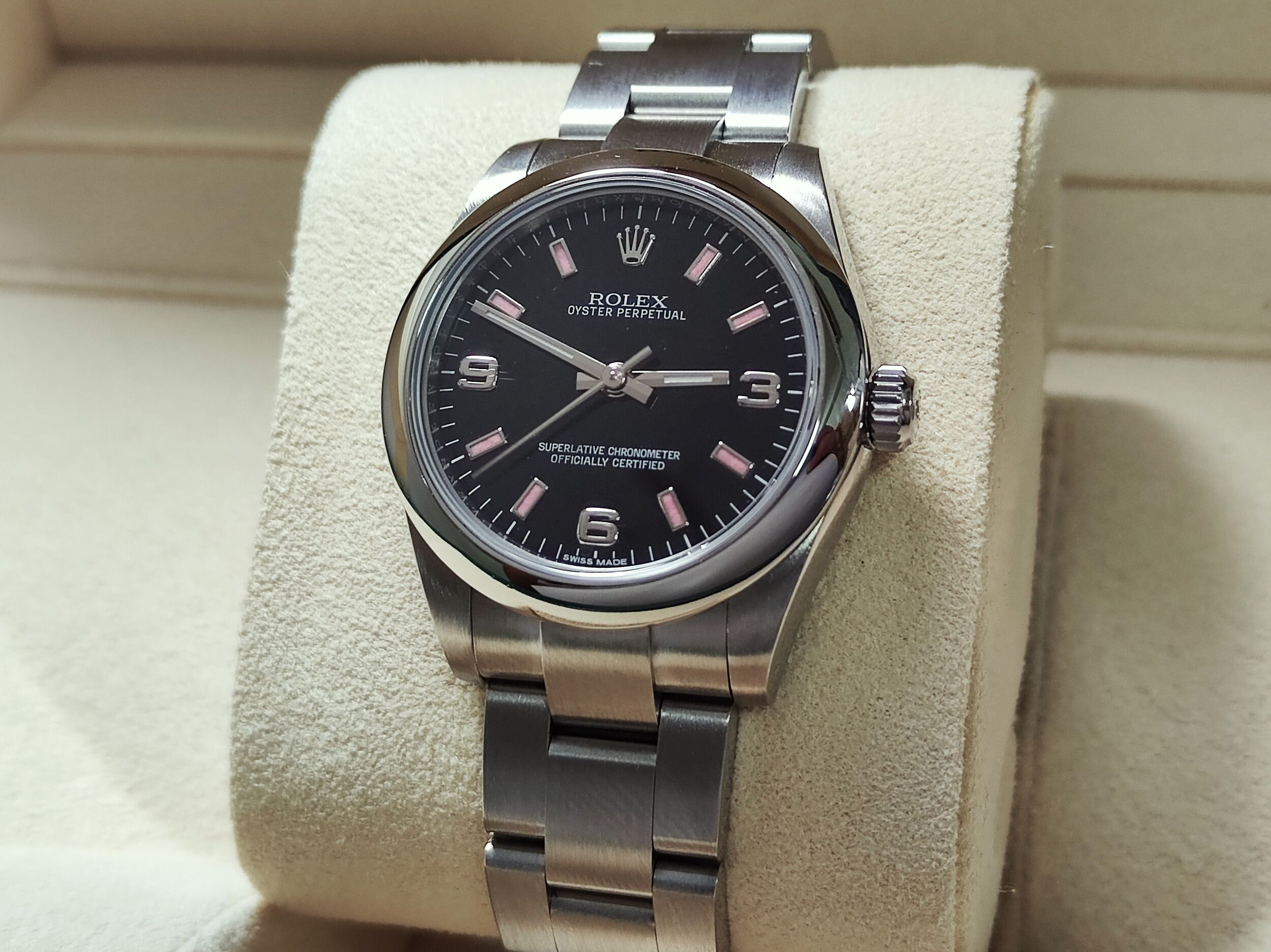 勞力士 177200 最夯blackpink配色 錶徑31mm 黑色面盤 粉紅時標 自動上鍊~原廠盒單 2016