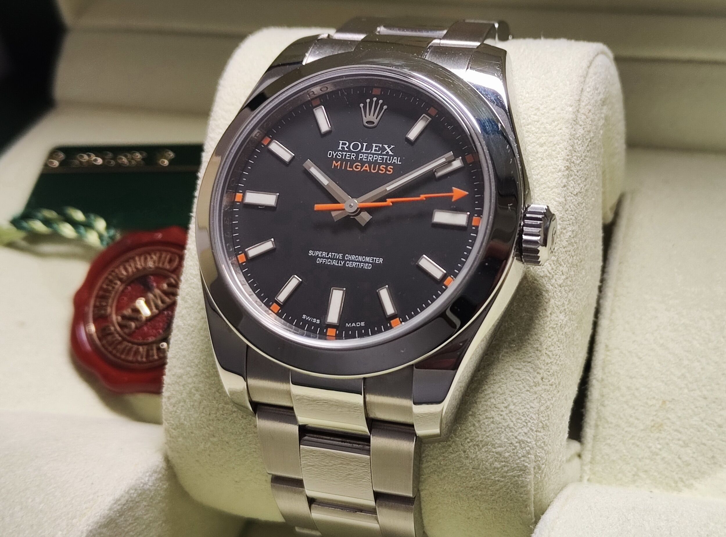 勞力士 Milgauss 高抗磁 116400 錶徑40mm 自動上鍊 橘色閃電針 116400GV~原廠盒單 2013