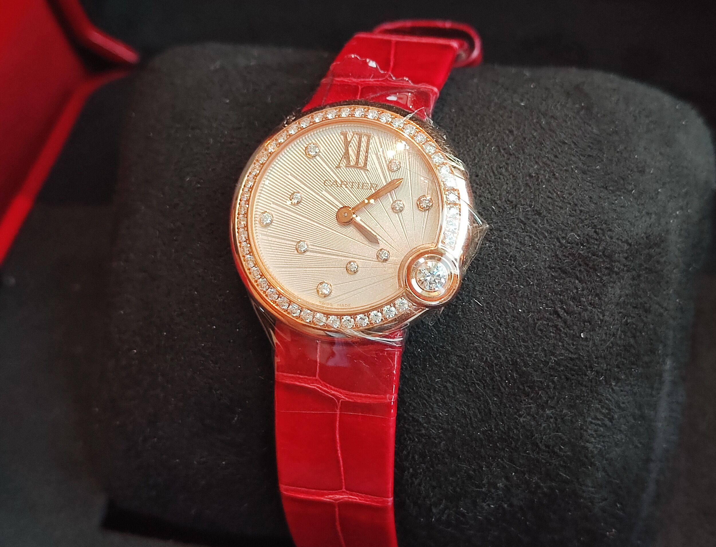 卡地亞 CARTIER 近新 玫瑰金 原鑲鑽錶 錶徑30mm 原裝石英機芯 白氣球~原廠盒單 2023