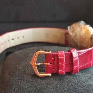 原廠亮紅色鱷魚皮錶帶 原廠玫瑰金錶扣