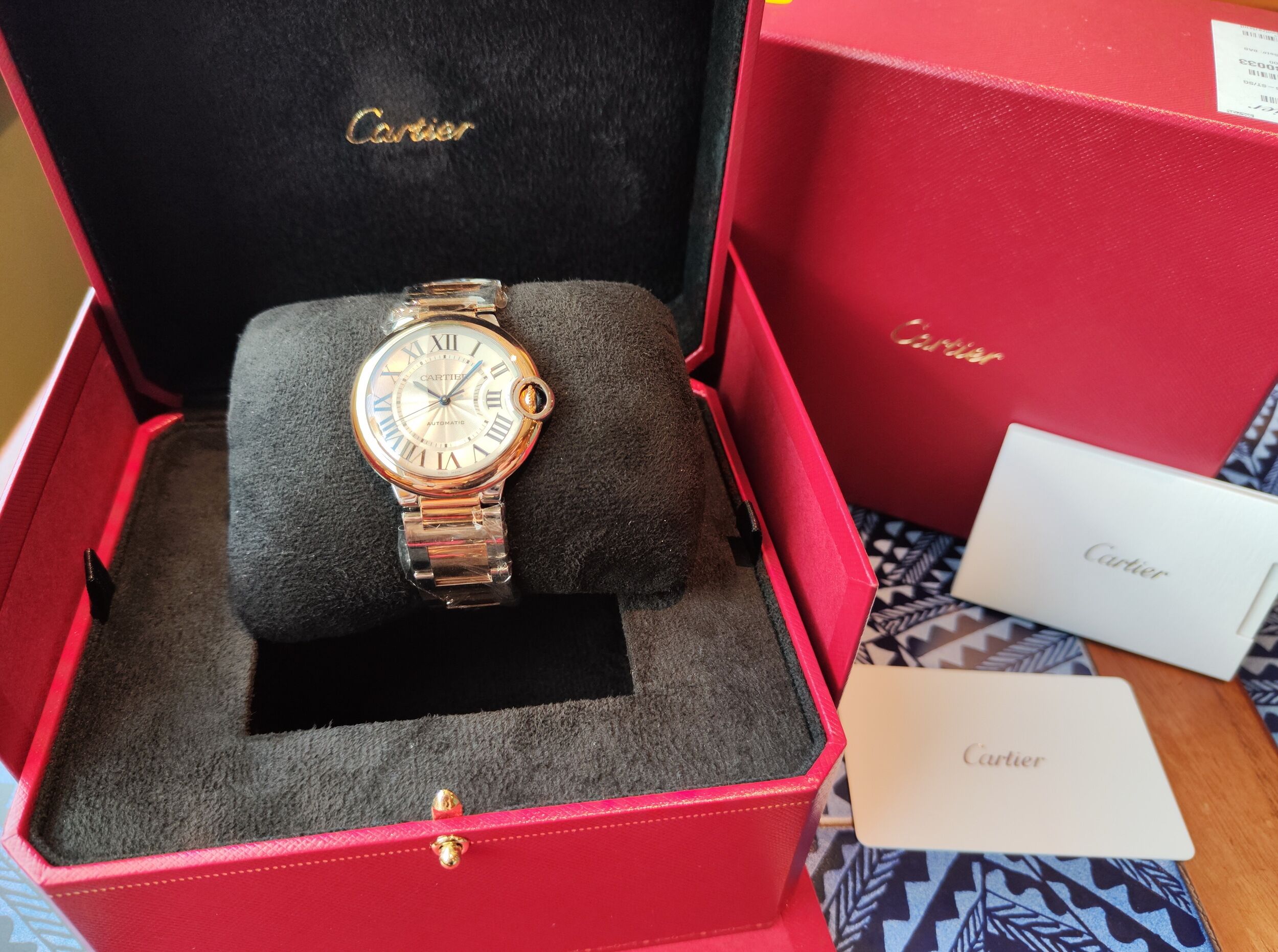 卡地亞 CARTIER 全新 半玫瑰金 藍氣球 錶徑36mm 自動上鍊 羅馬數字~原廠盒單 2025