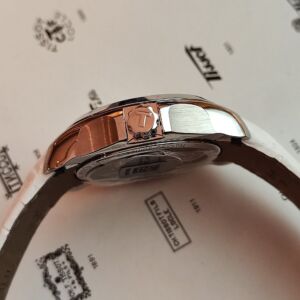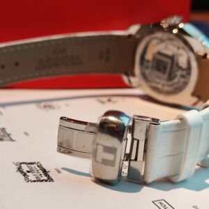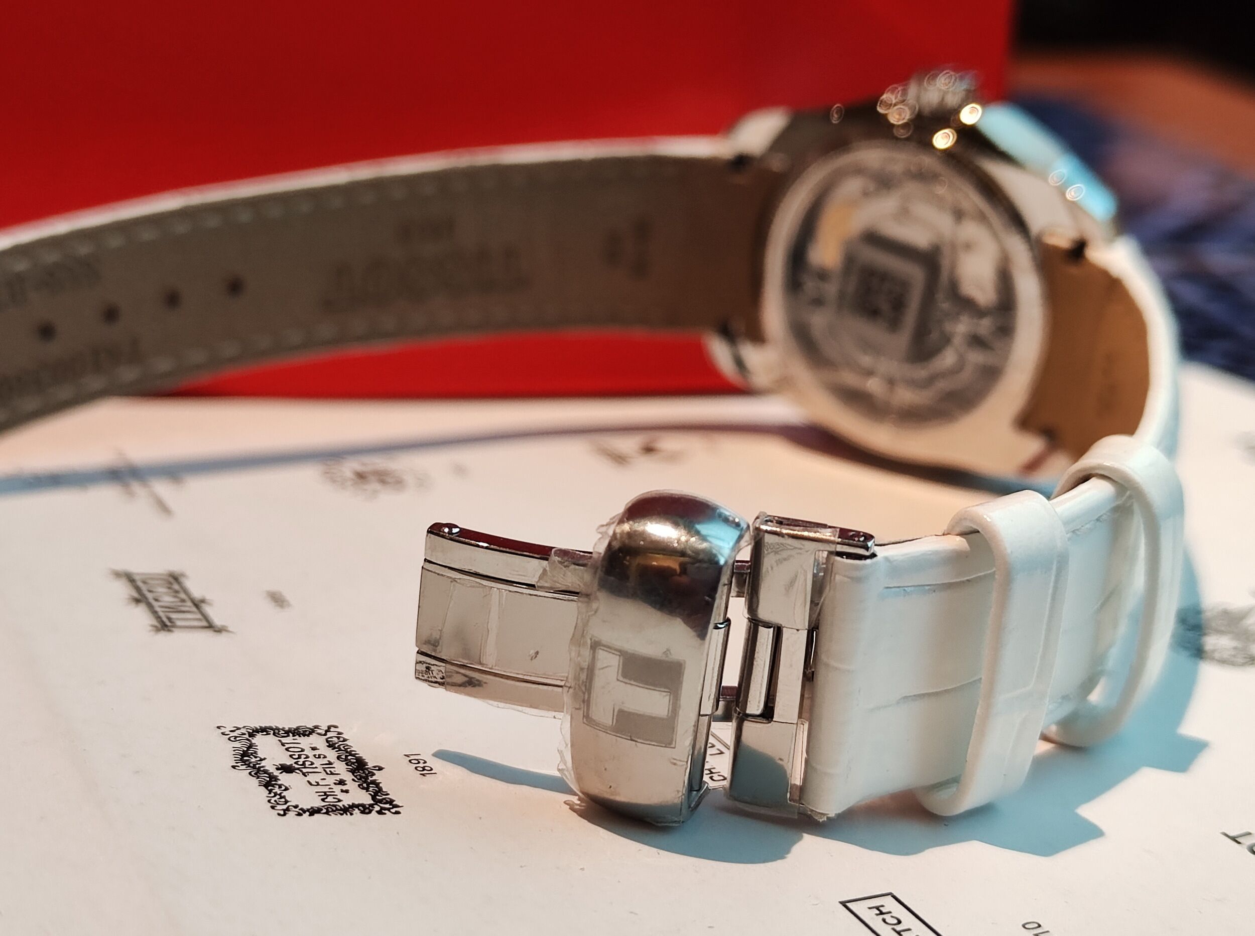 透明底蓋設計 原廠白色皮錶帶 原廠摺疊扣