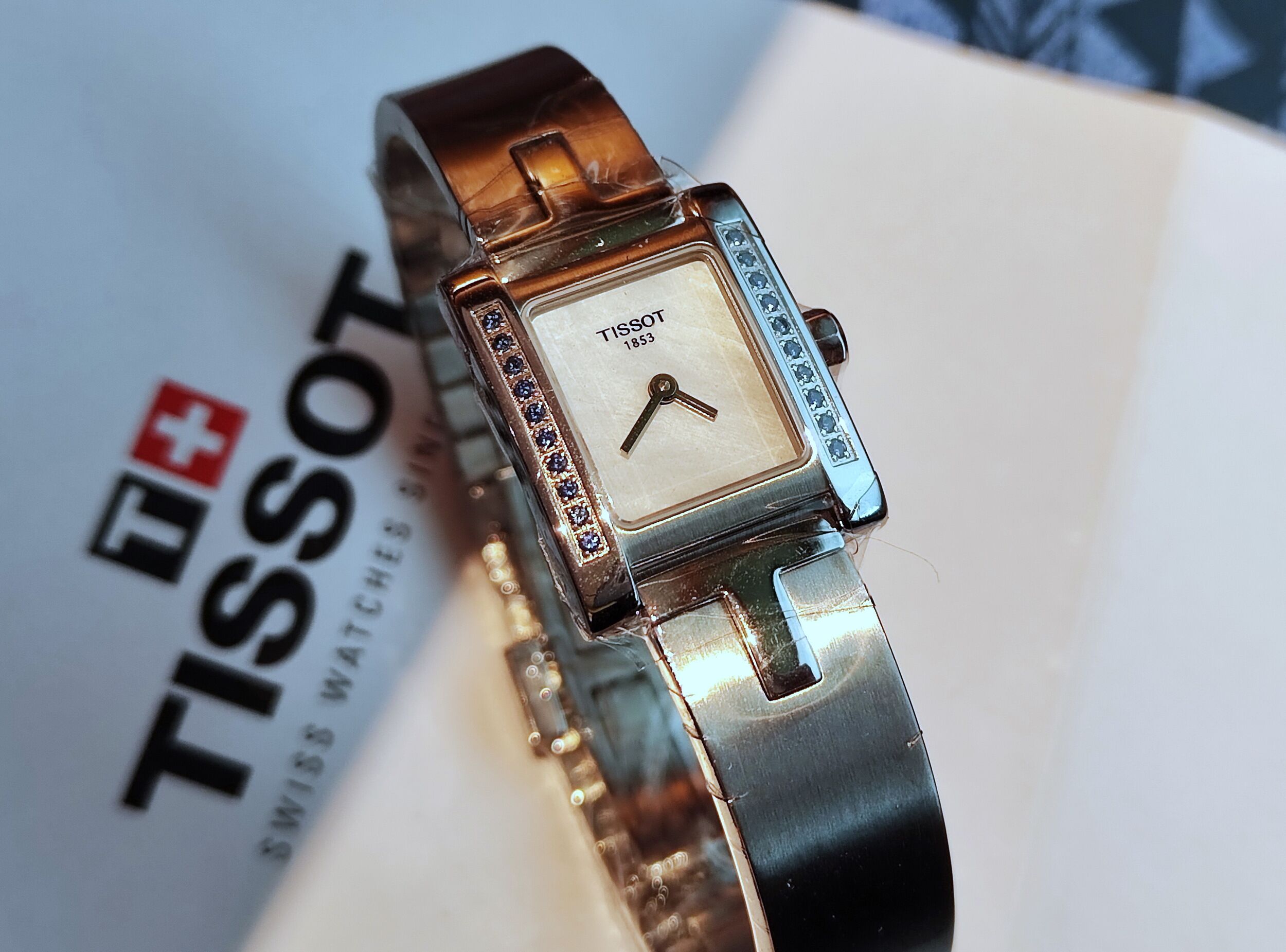天梭 TISSOT 全新 Lady 女仕 原鑲藍色鋯石 珍珠母貝面盤 錶徑20mm 石英機芯~原廠盒單 未使用品