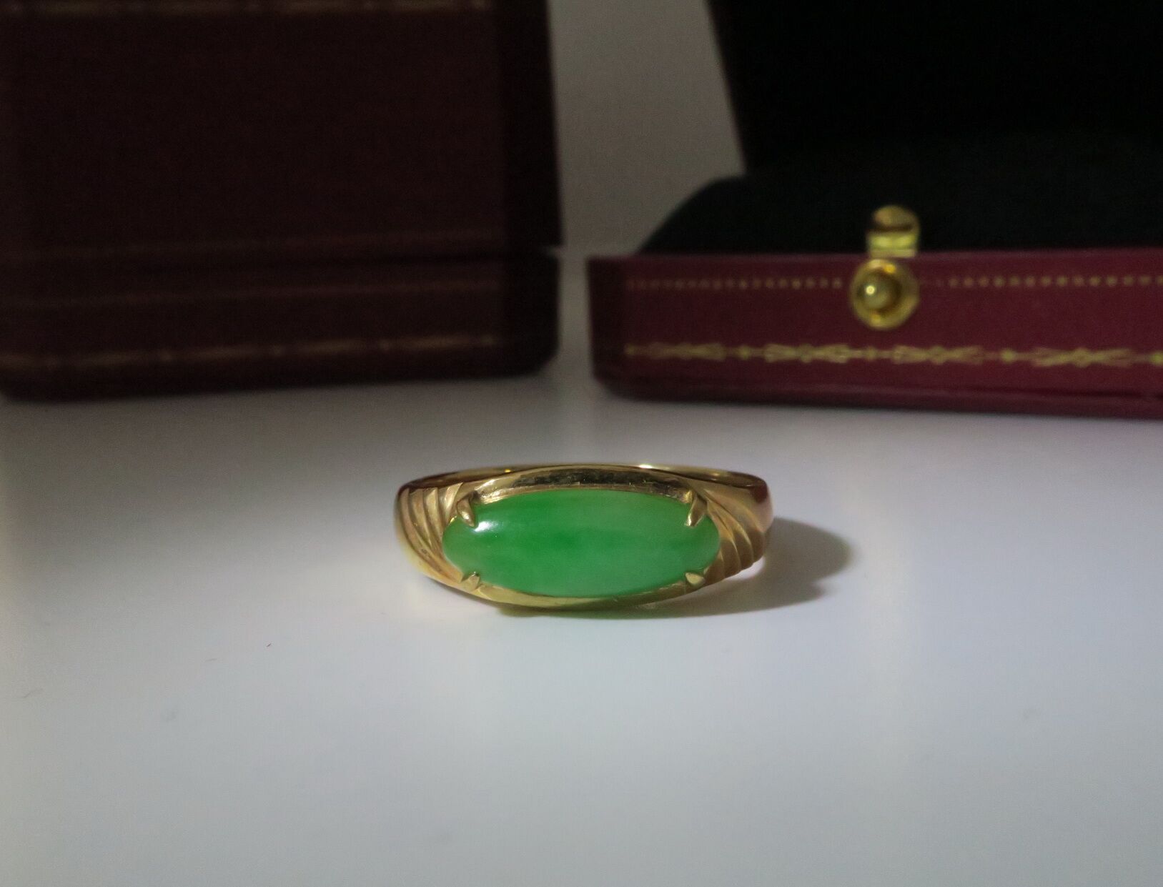 天然翡翠 B貨 戒指 18K金戒台 身上帶點綠顯落落大方