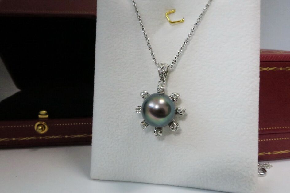 天然 南洋黑色珍珠項鍊/吊墬 鑲崁太陽光芒鑽石 高貴典雅