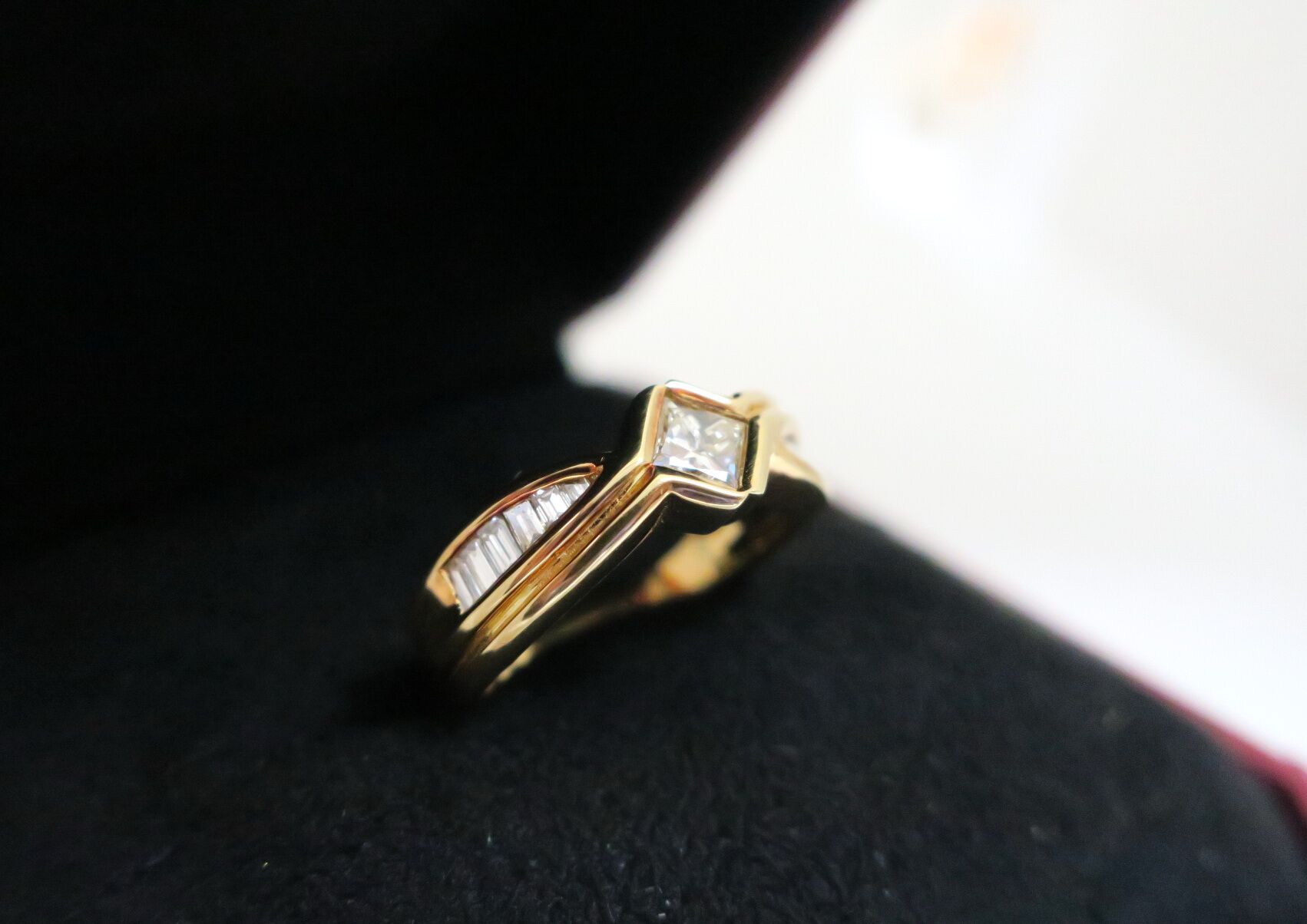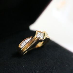 天然 方鑽 重31分 鑲崁 梯鑽戒台/戒指 18K金