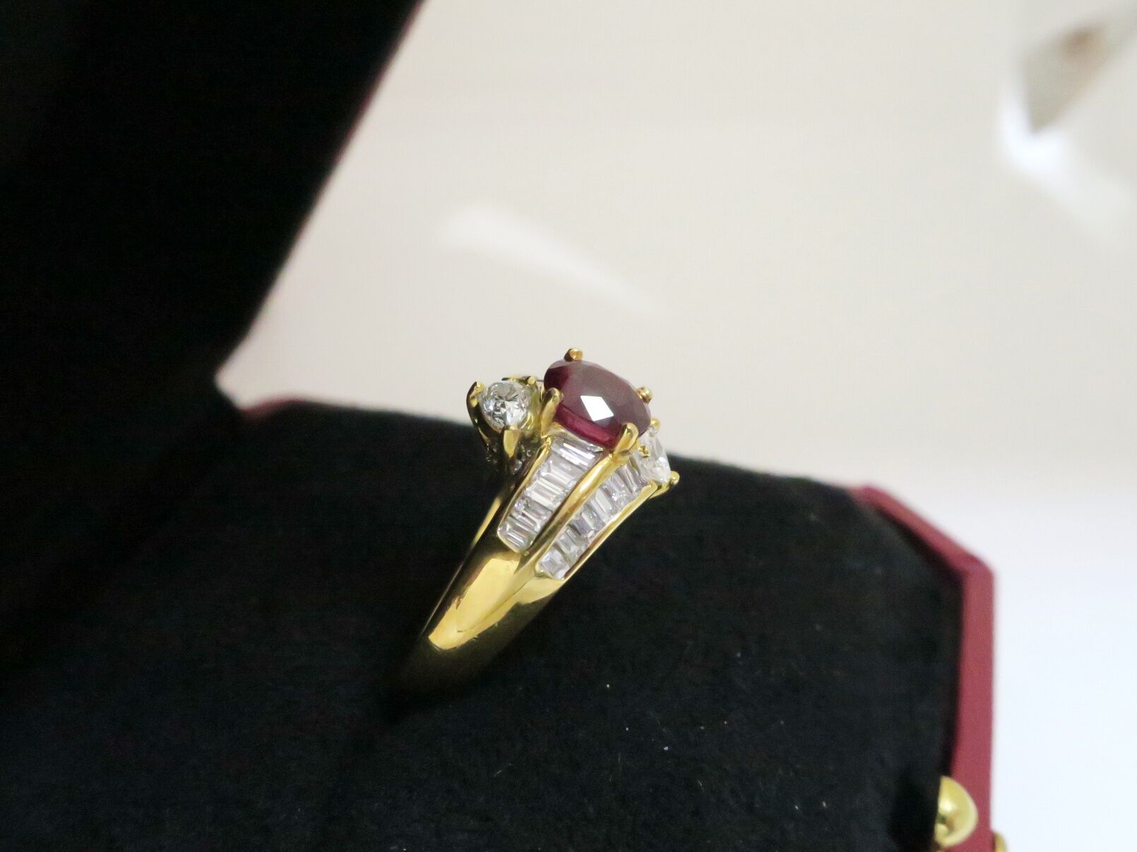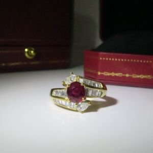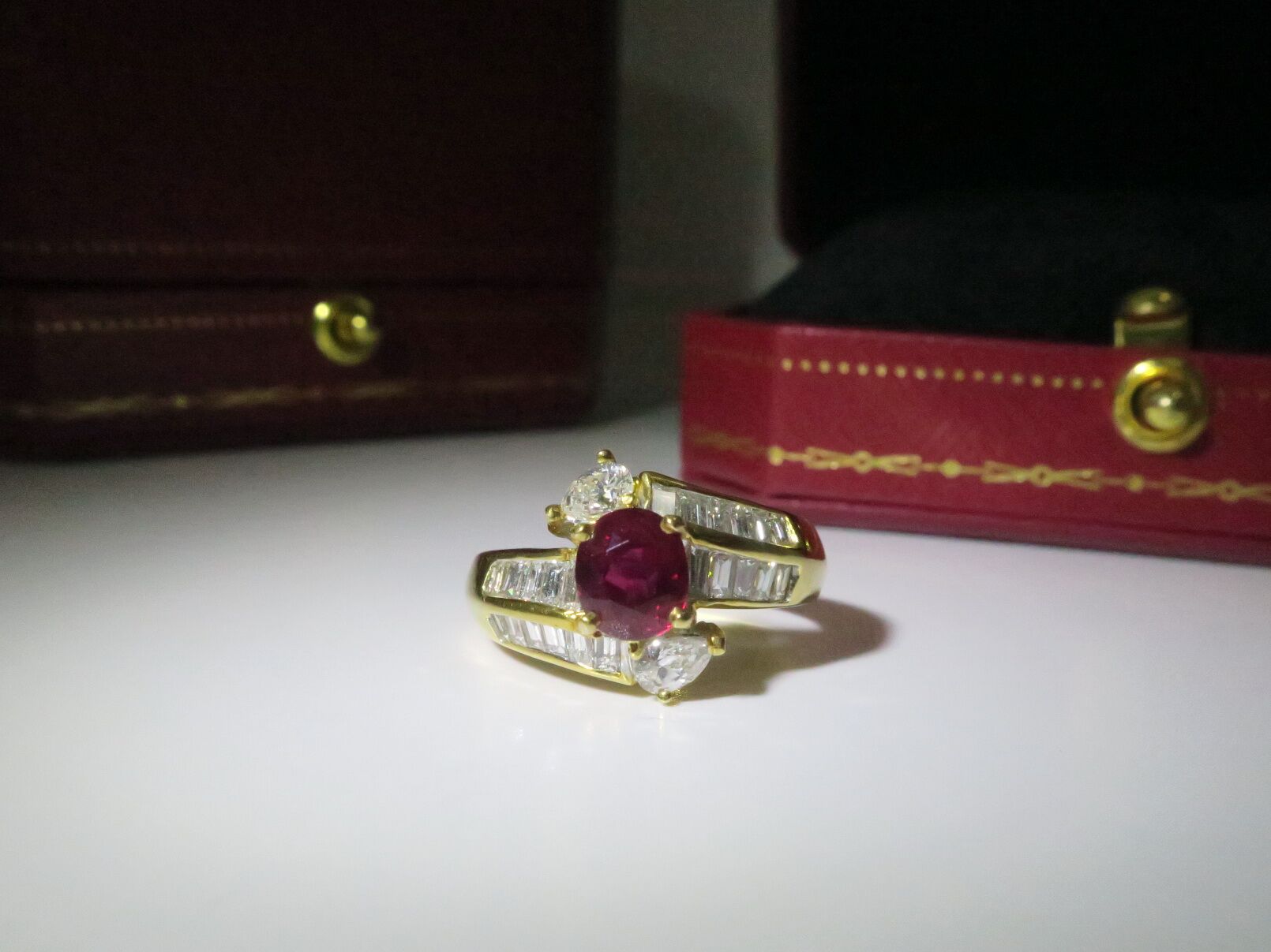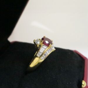 天然 紅寶石1.14克拉 鑲崁 鑽石/梯鑽/水滴鑽 戒台/戒指 18K金
