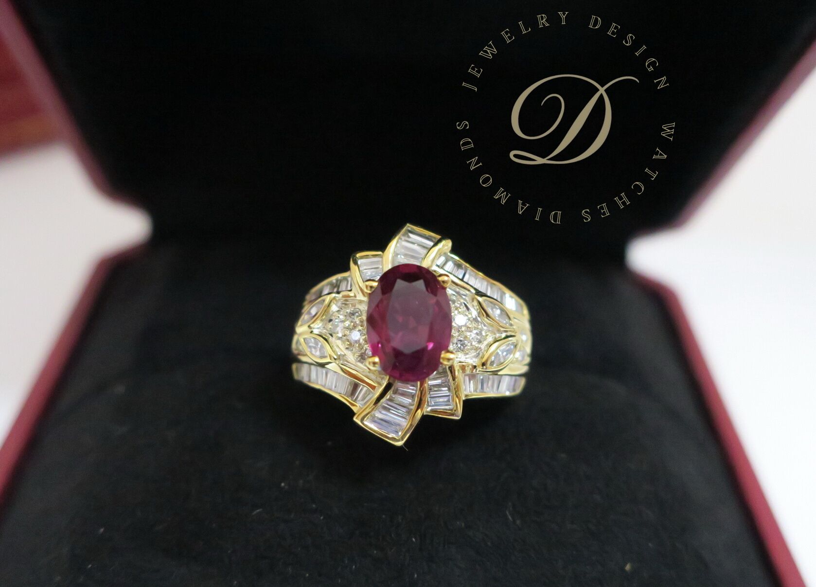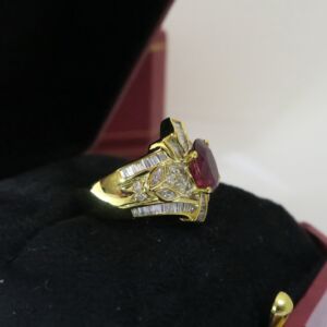 天然 紅寶石1.73克拉 鑲崁 鑽石/梯鑽/馬眼鑽 戒台/戒指 18K金