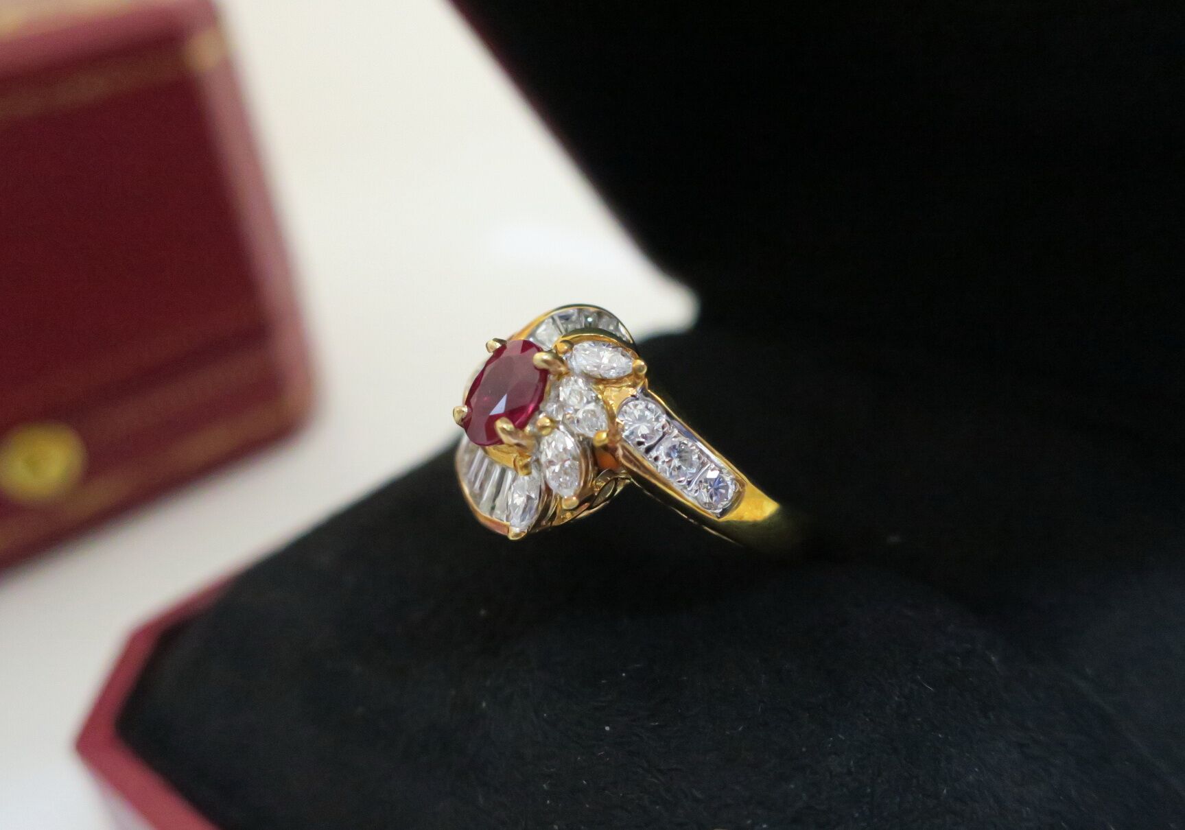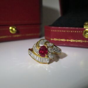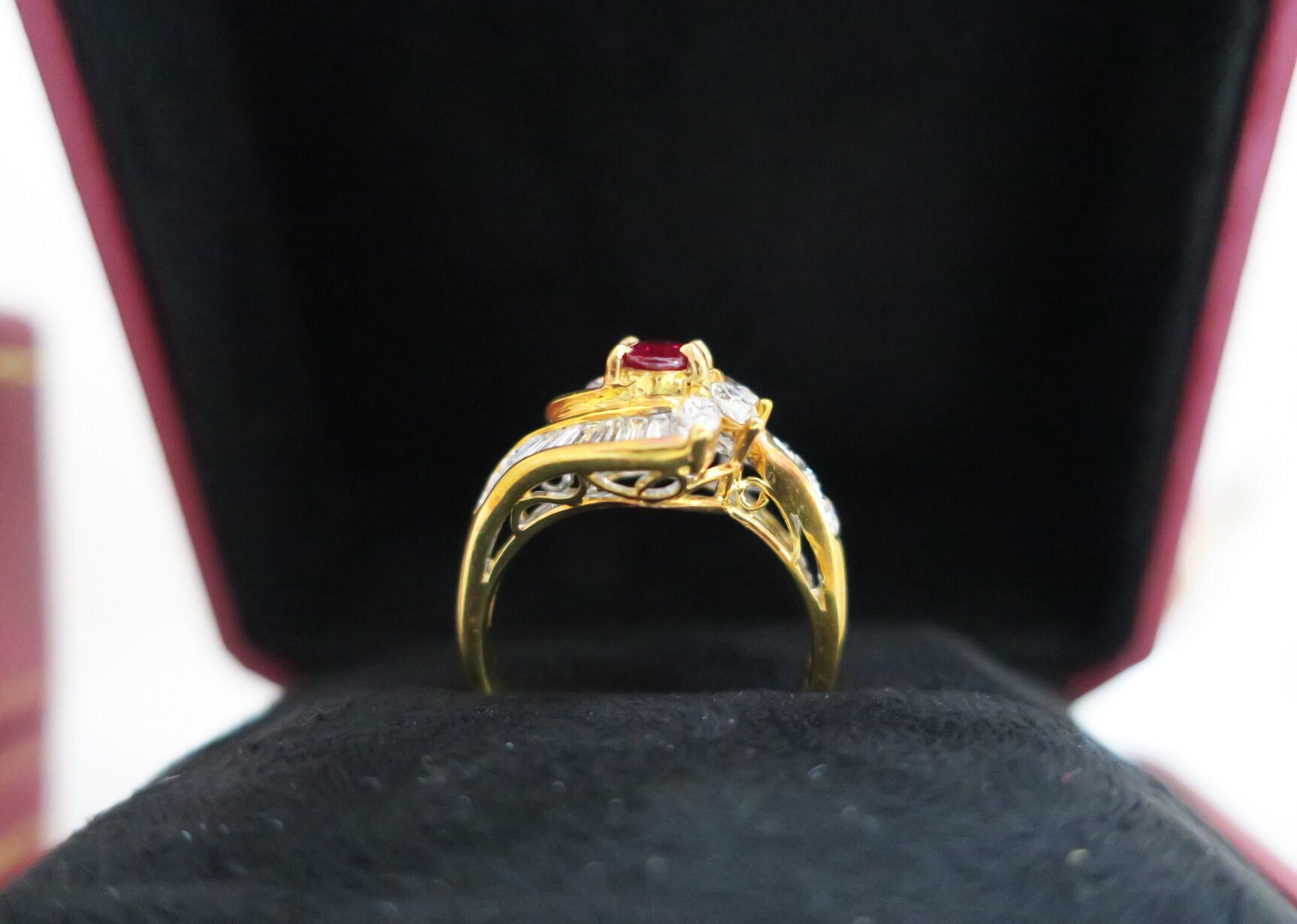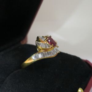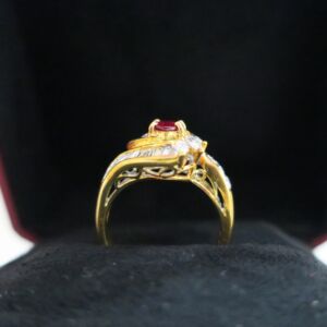 天然 紅寶石87分 鑲崁 鑽石/梯鑽/馬眼鑽 總重1.13克拉 戒台/戒指 18K金