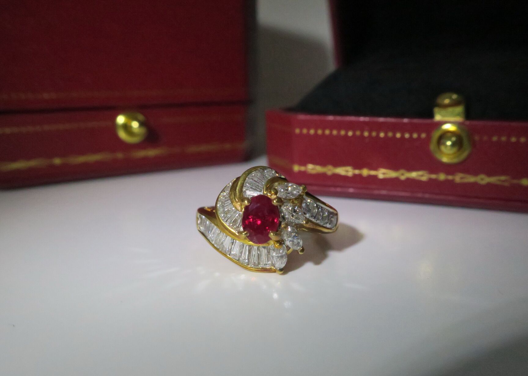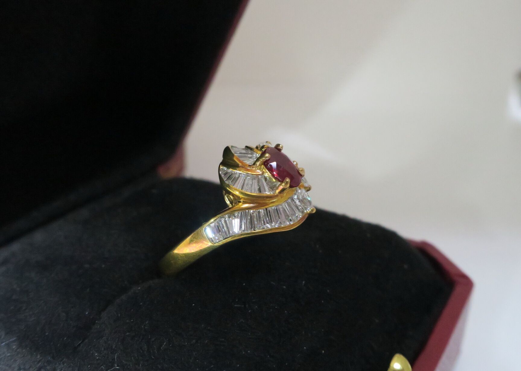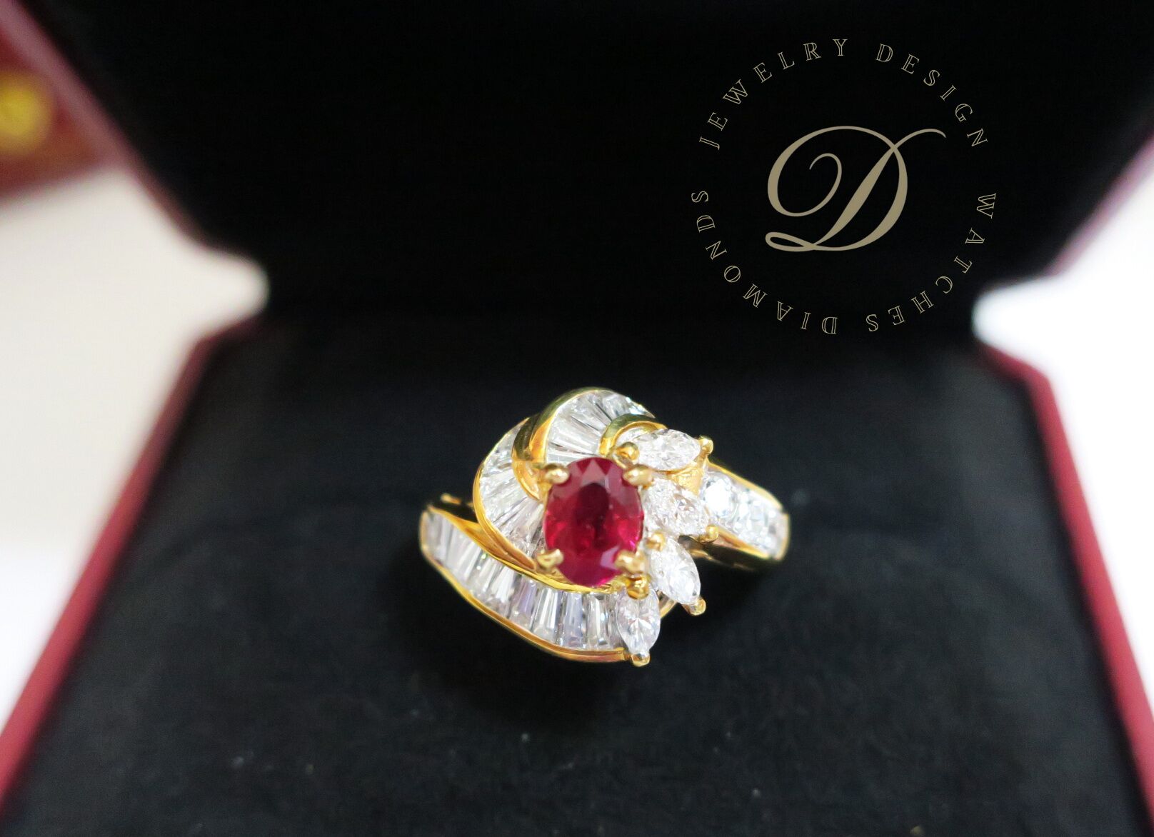 天然 紅寶石87分 鑲崁 鑽石/梯鑽/馬眼鑽 總重1.13克拉 戒台/戒指 18K金