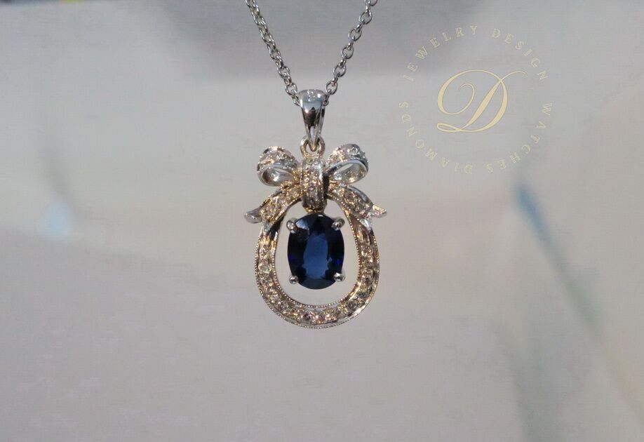 天然 藍寶石/鑽石項鍊 蝴蝶結造型 18K白金打造 高貴典雅