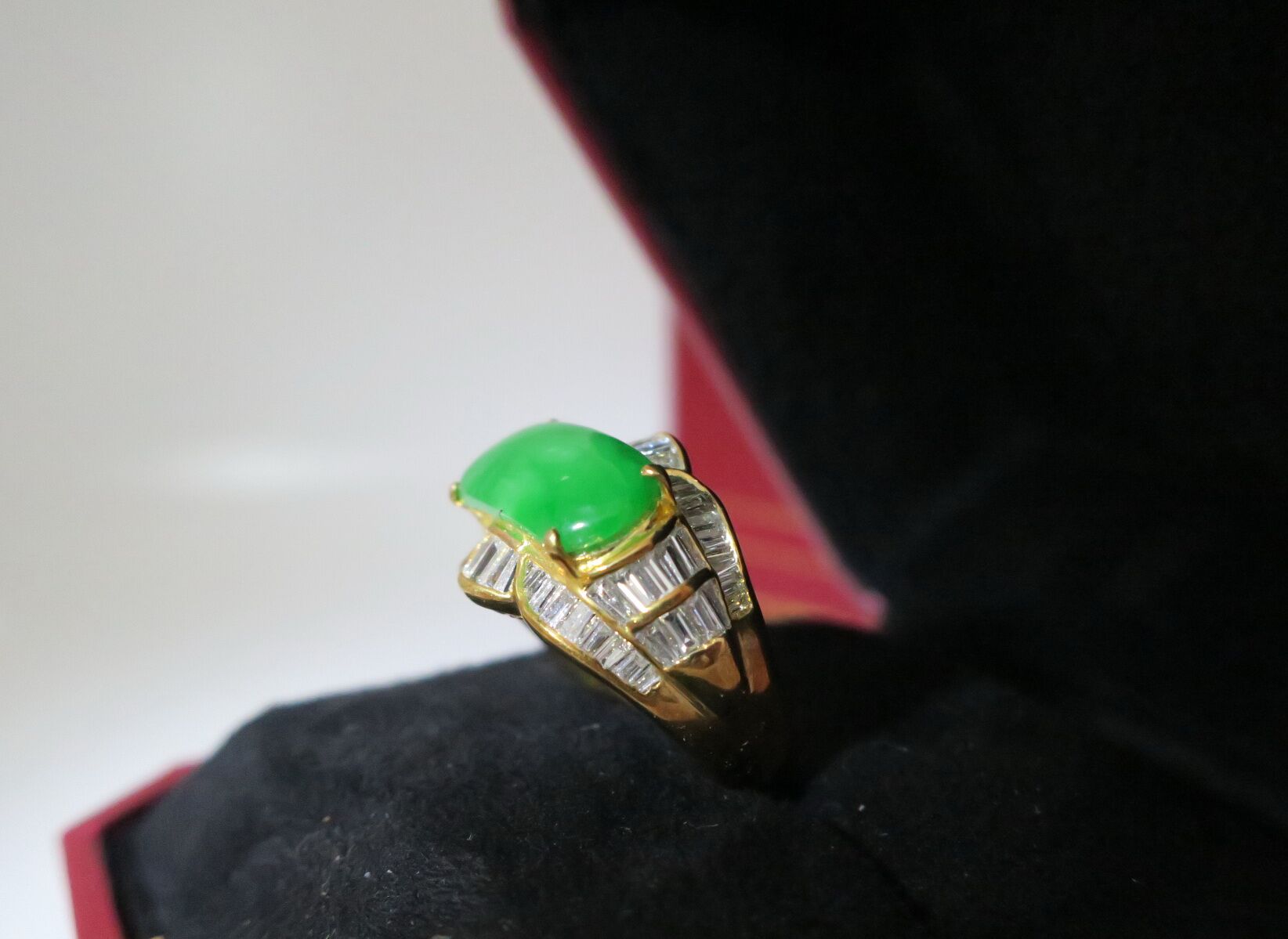 天然 高品質 A貨翡翠 鑲鑽戒指 18K金戒台 身上帶點綠顯落落大方