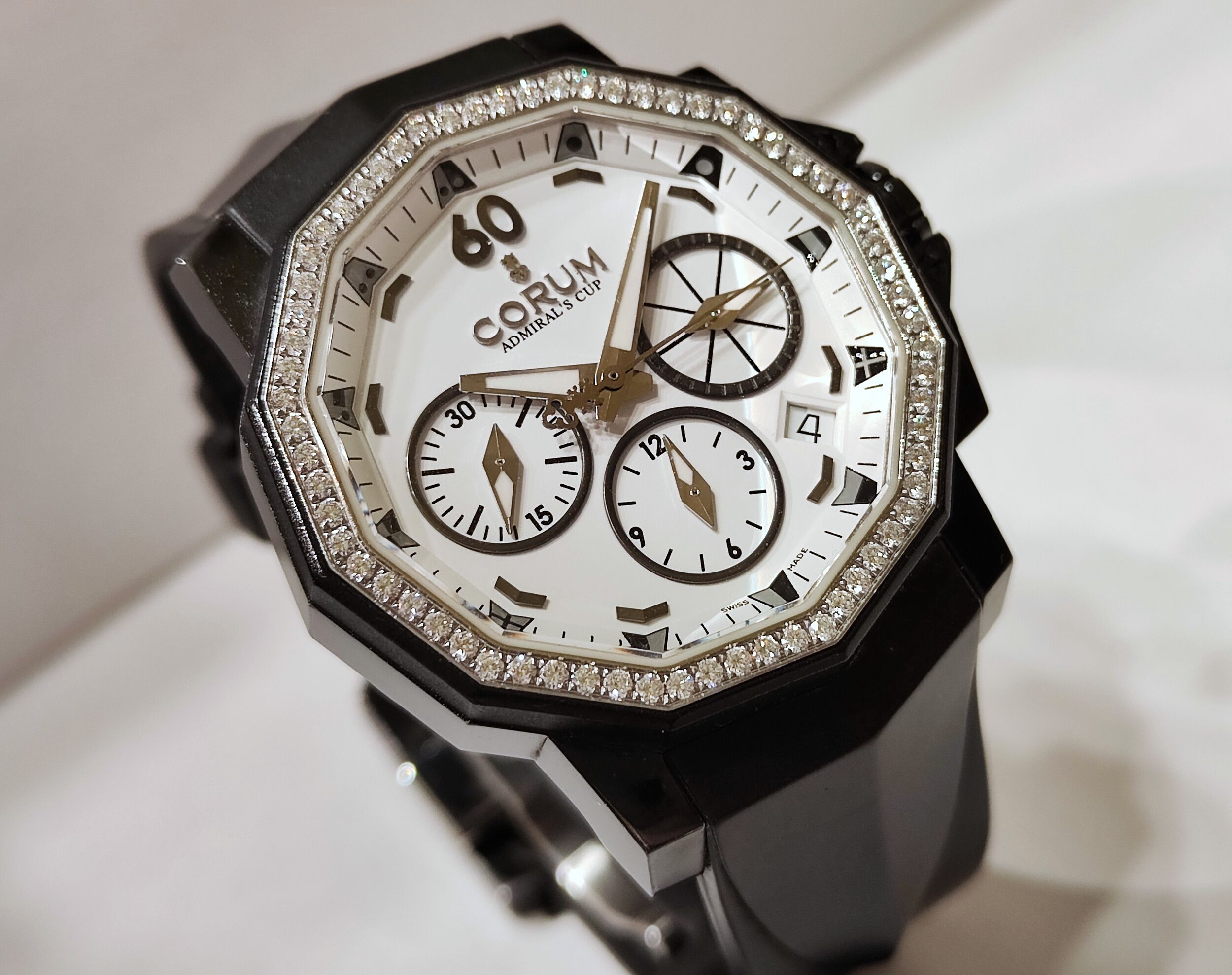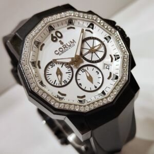 崑崙 CORUM 海軍上將 原鑲鑽圈 錶徑40mm 鍍黑錶殼 自動上鍊 計時碼錶~原廠盒單 全球限量