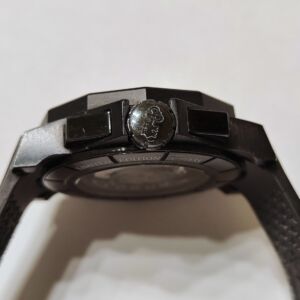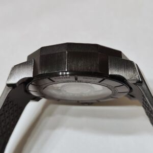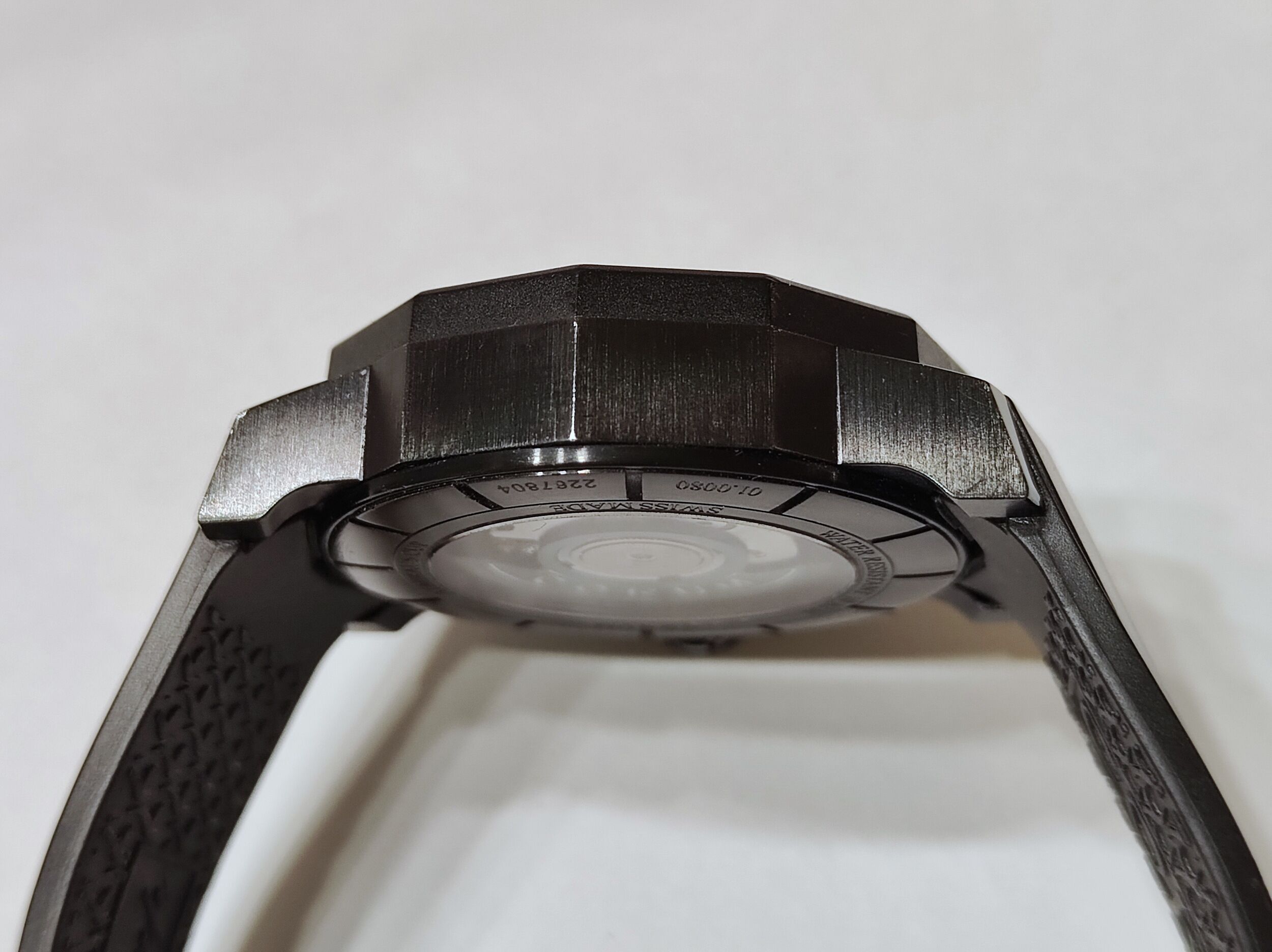 透明底蓋設計 原廠黑色橡膠錶帶 原廠黑色PVD摺疊扣