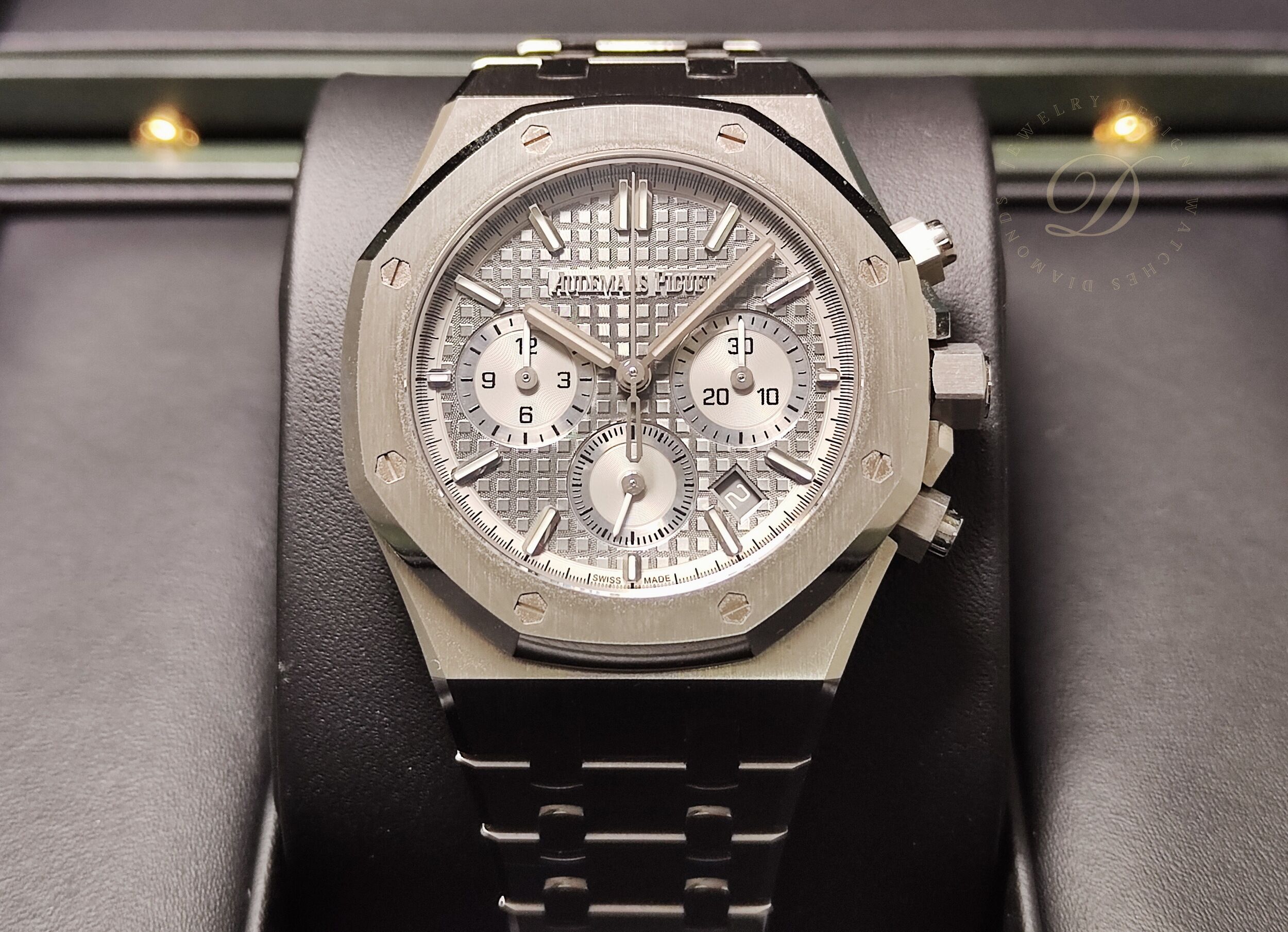 愛彼 AP 皇家橡樹 26715ST 錶徑38mm 灰色面盤 自動上鍊 計時功能~原廠盒單