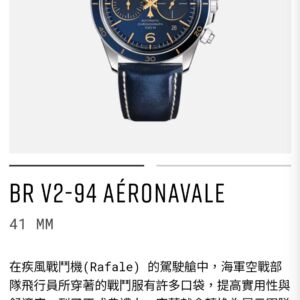 柏萊士 全新 BR V2-94 飛行錶 藍色面盤 大錶徑41mm 自動上鍊 計時功能 軍錶~原廠盒單 2024AD
