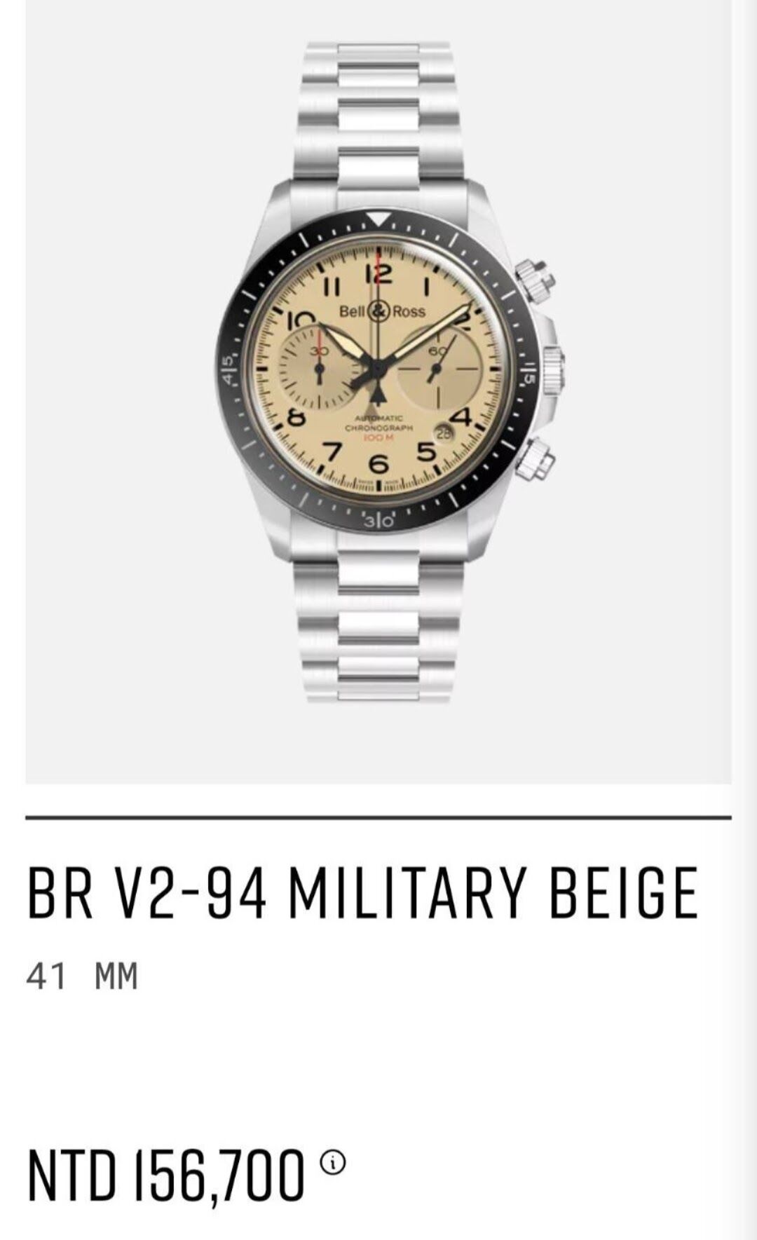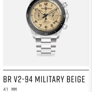 柏萊士 全新 BR V2-94 飛行錶 軍米色面盤 大錶徑41mm 自動上鍊 計時功能 原廠鋼帶~原廠盒單 2024AD