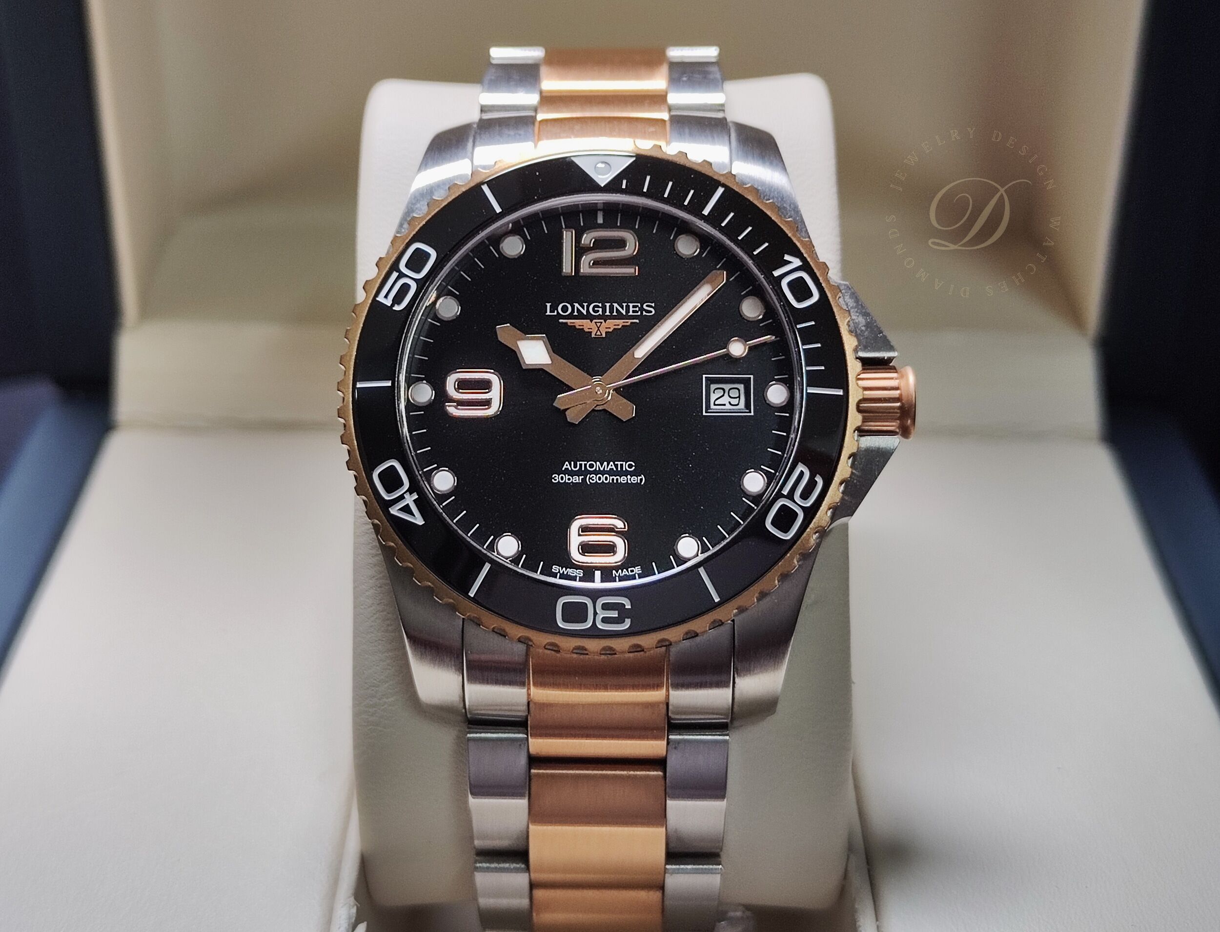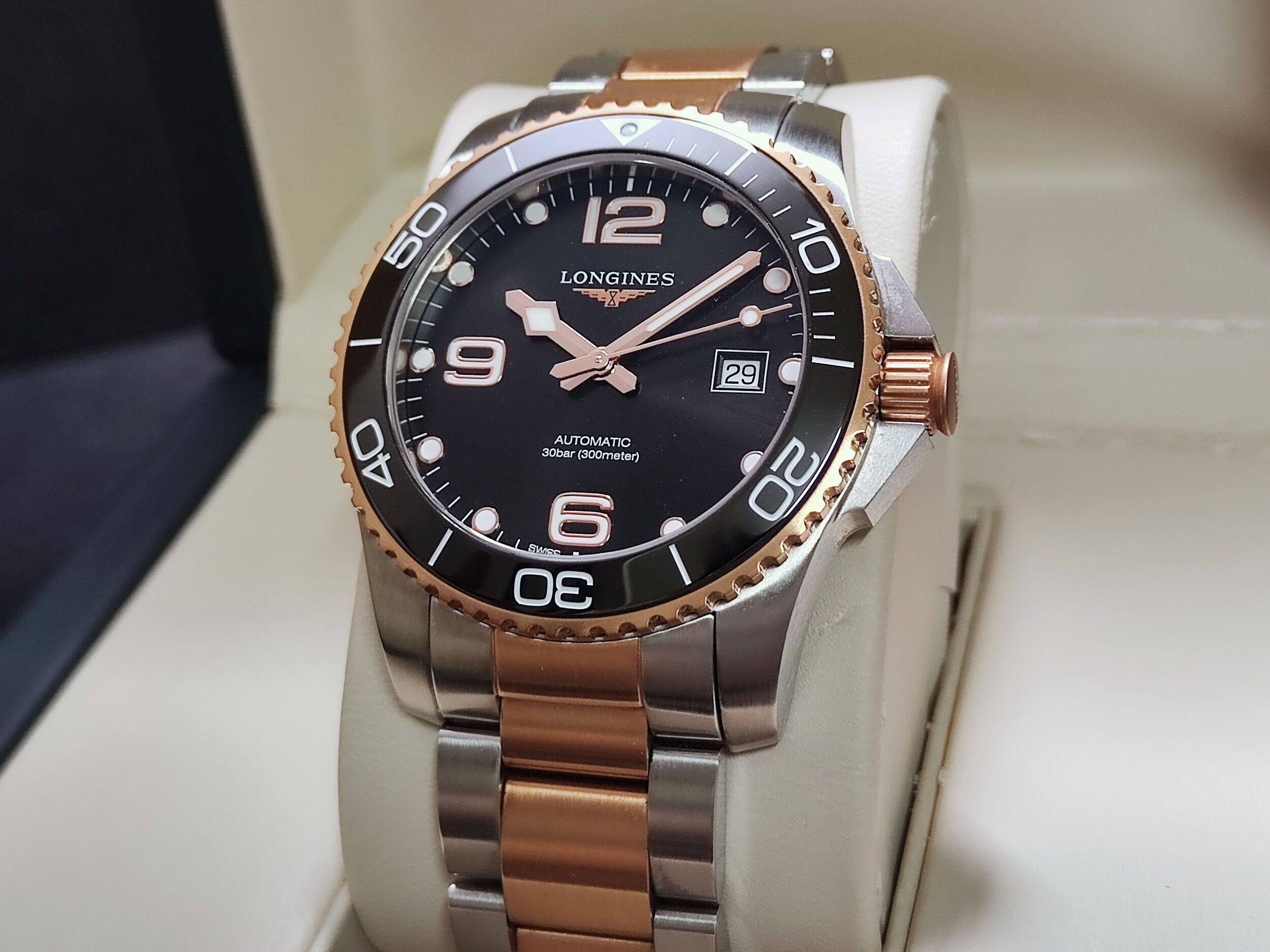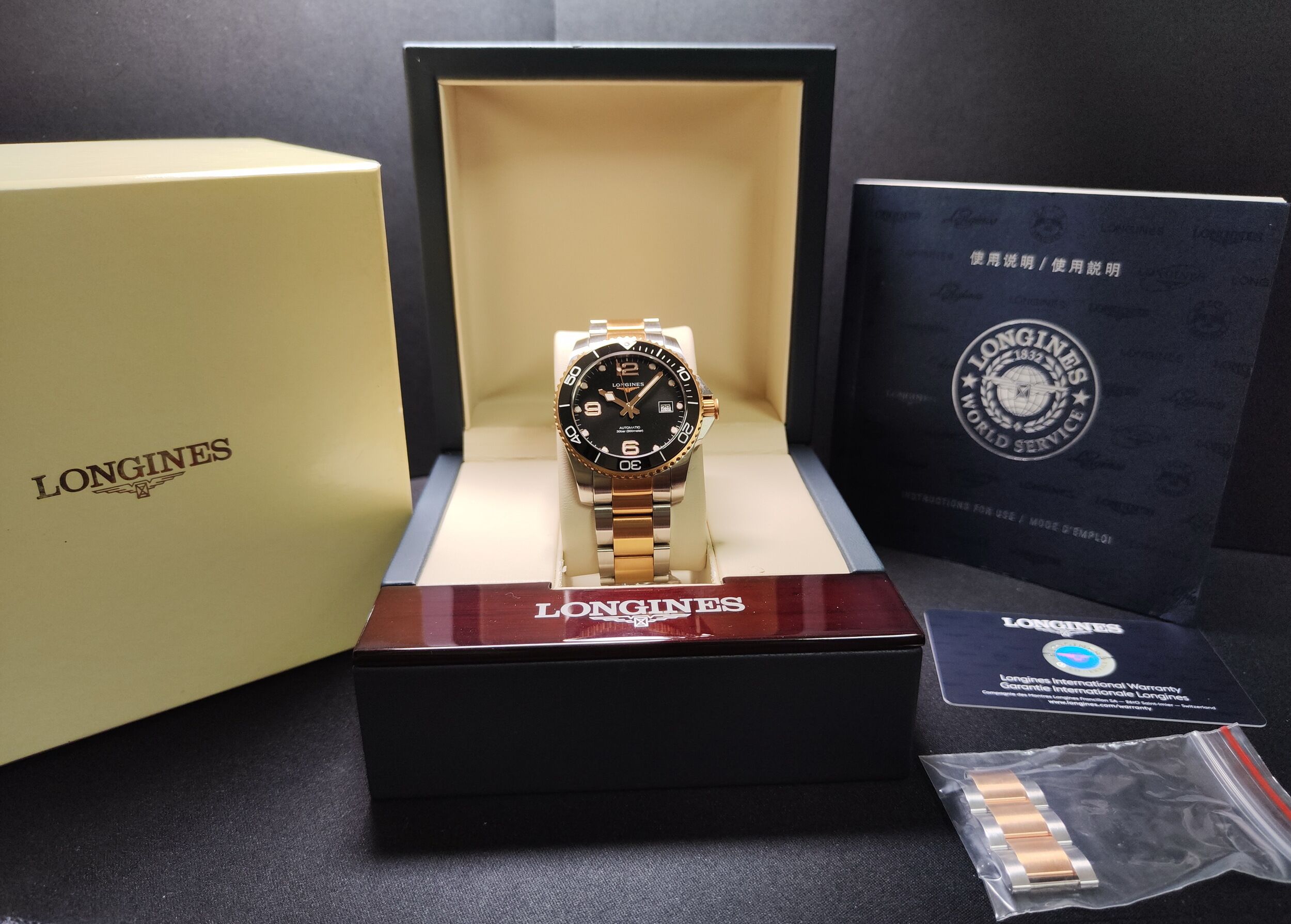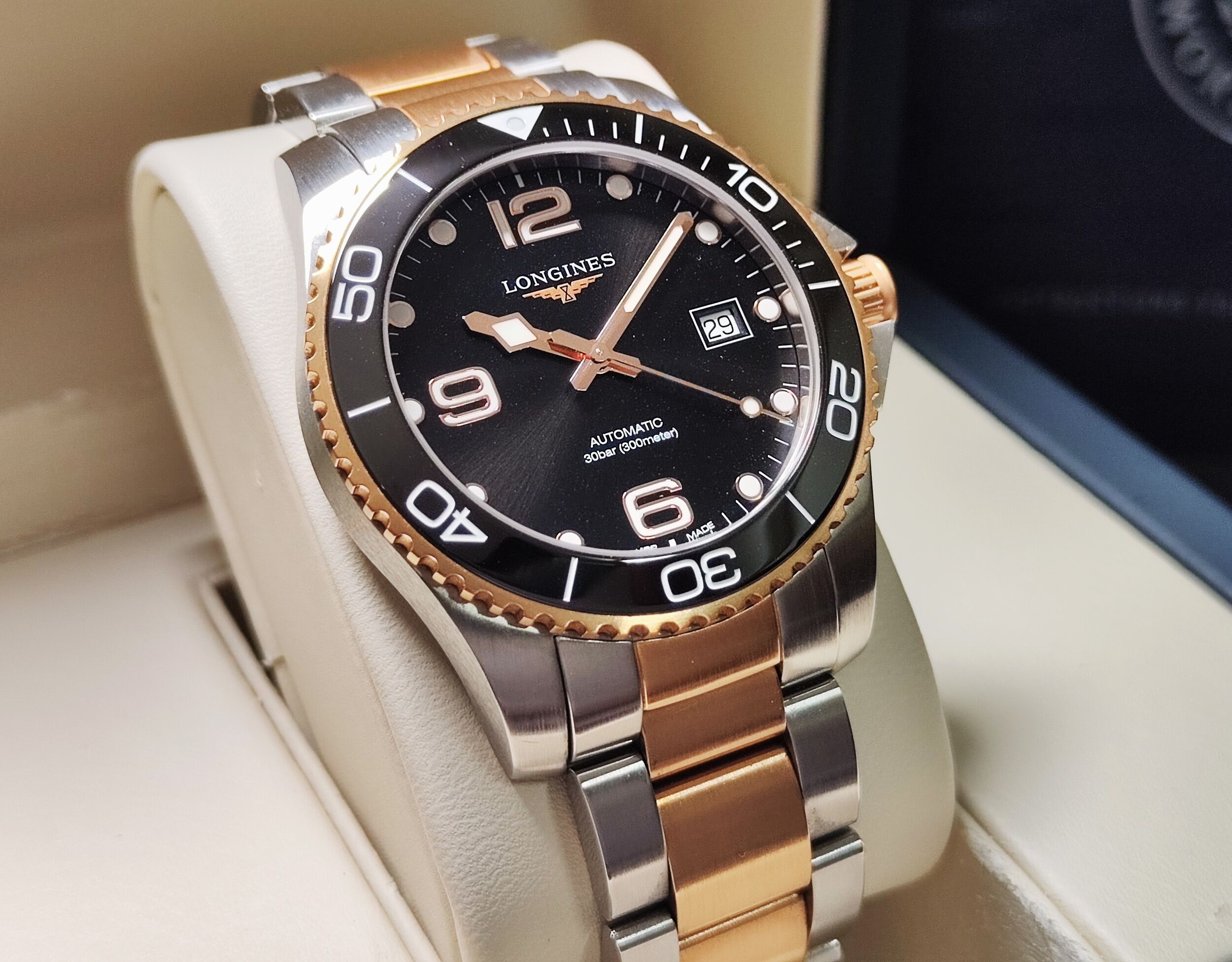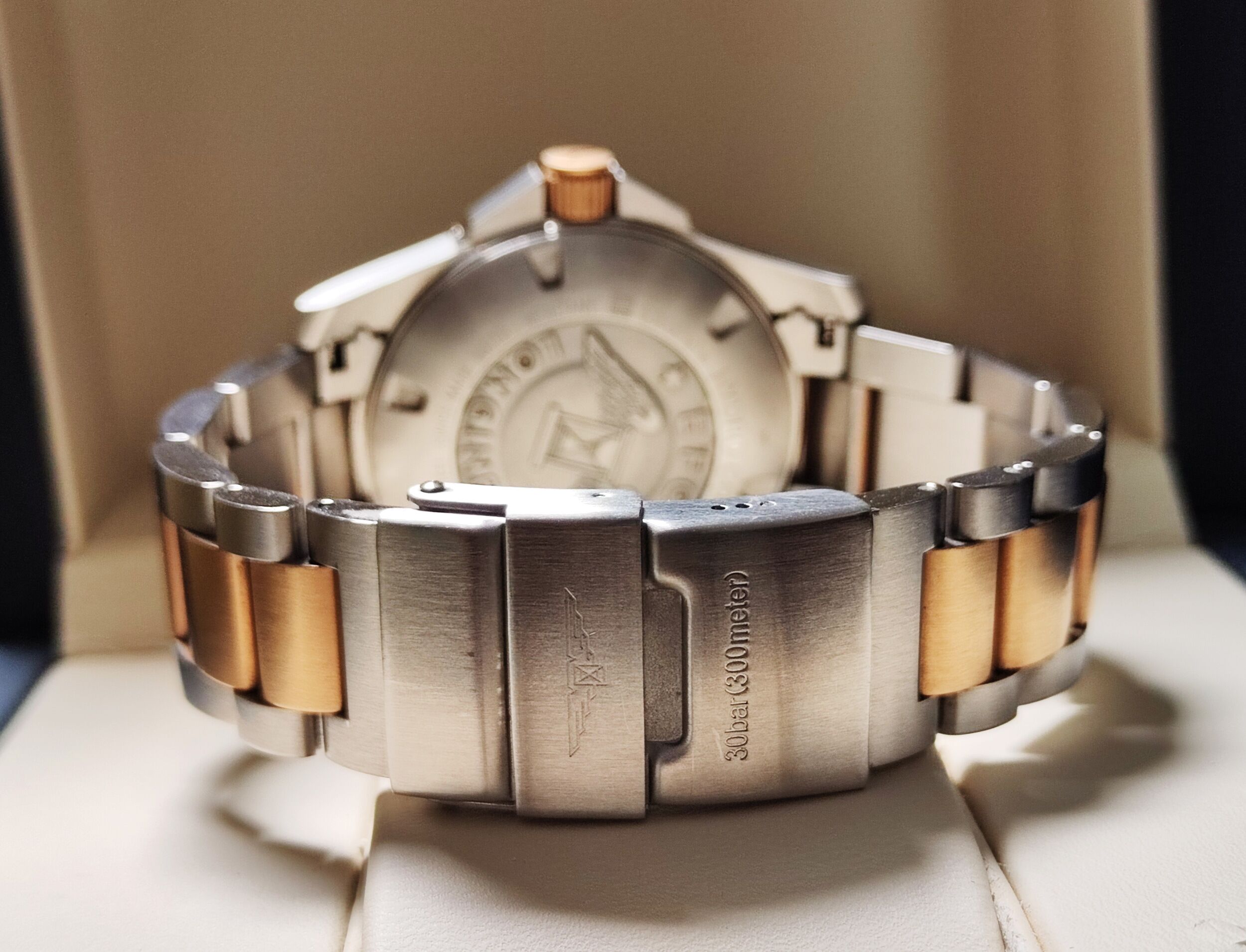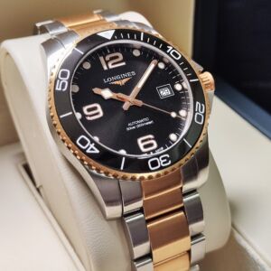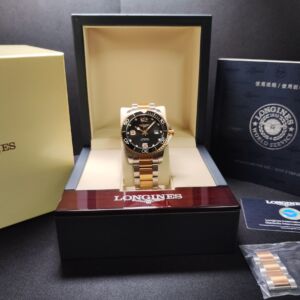 浪琴 半金 鍍玫瑰金 深海征服者 大錶徑41mm 黑金陶瓷圈 自動上鍊 半金藍 浪鬼 半金錶帶~原廠盒單 2022AD