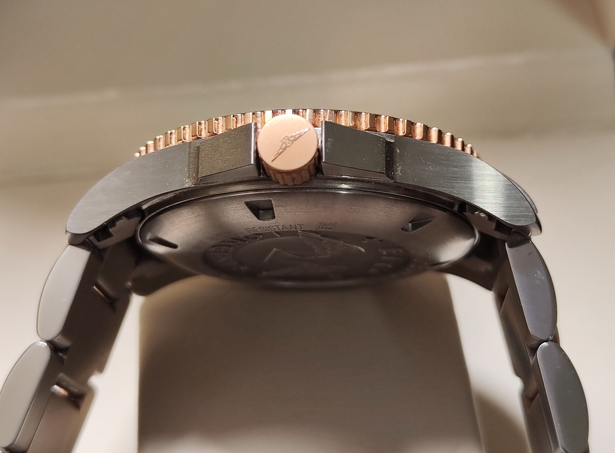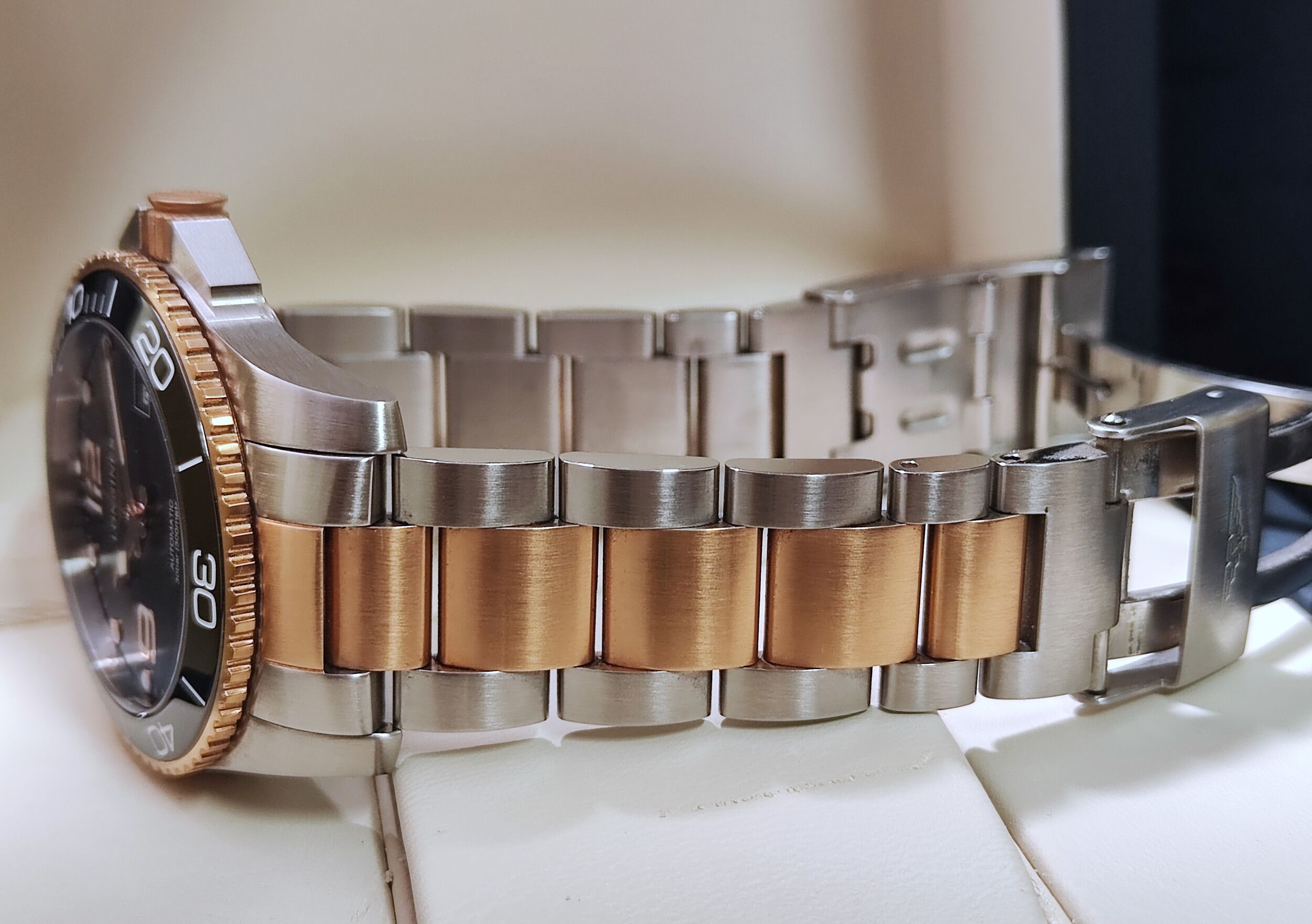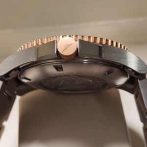 不銹鋼與鍍玫瑰金錶殼 大錶徑41mm 黑色陶瓷圈 防水300米
