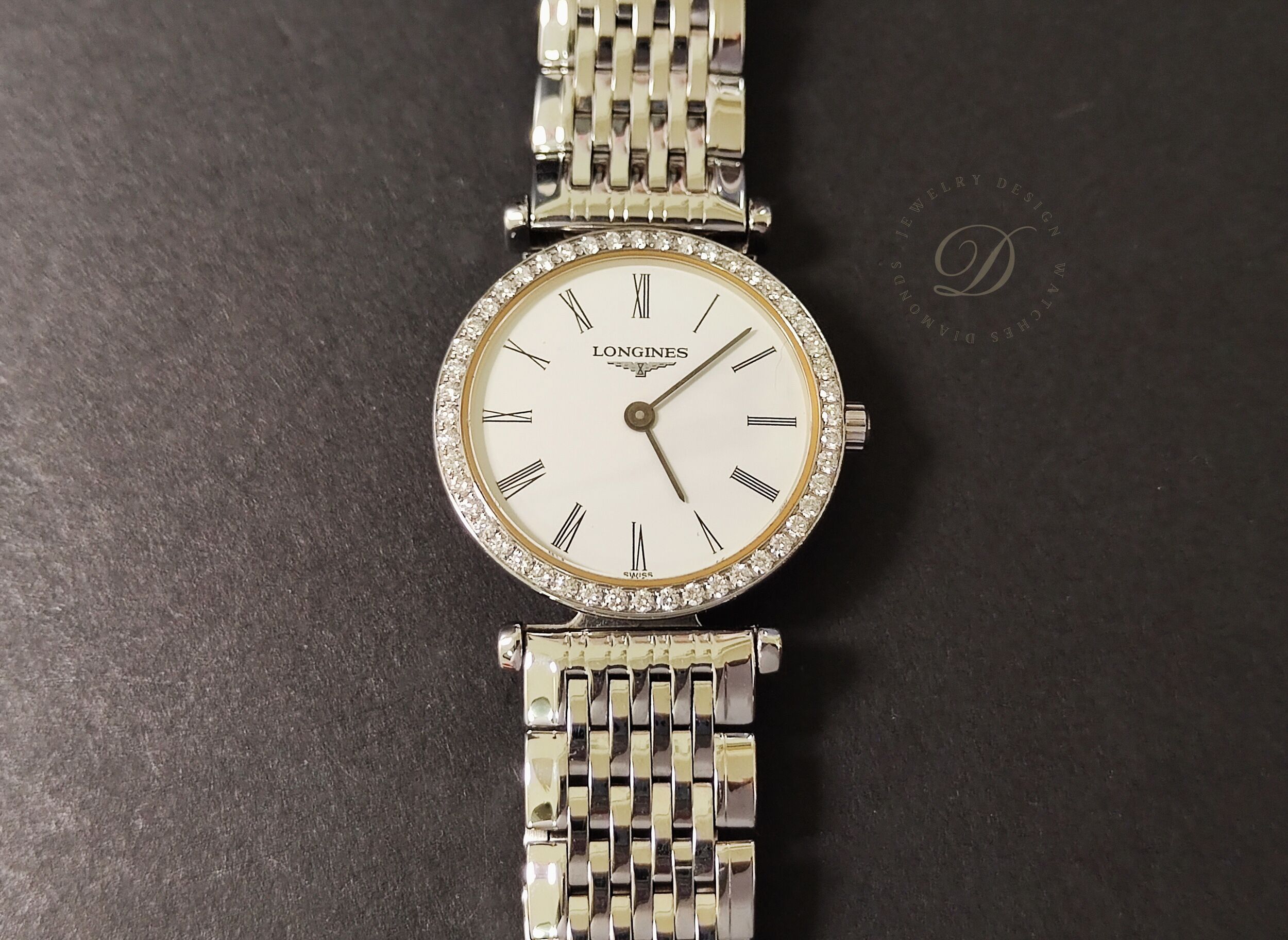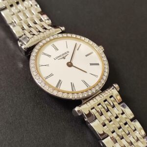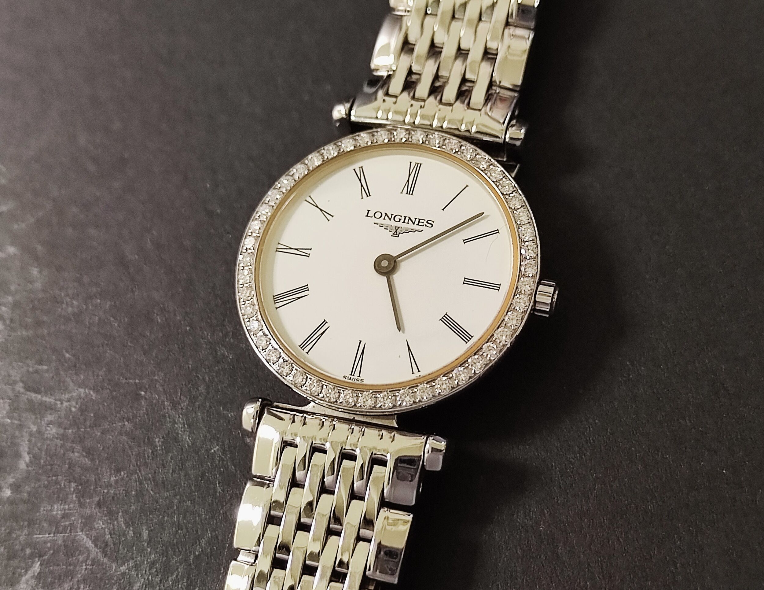 浪琴 嘉嵐系列 原鑲鑽圈 白色面盤 錶徑24mm 羅馬數字 石英機芯 LADY’S