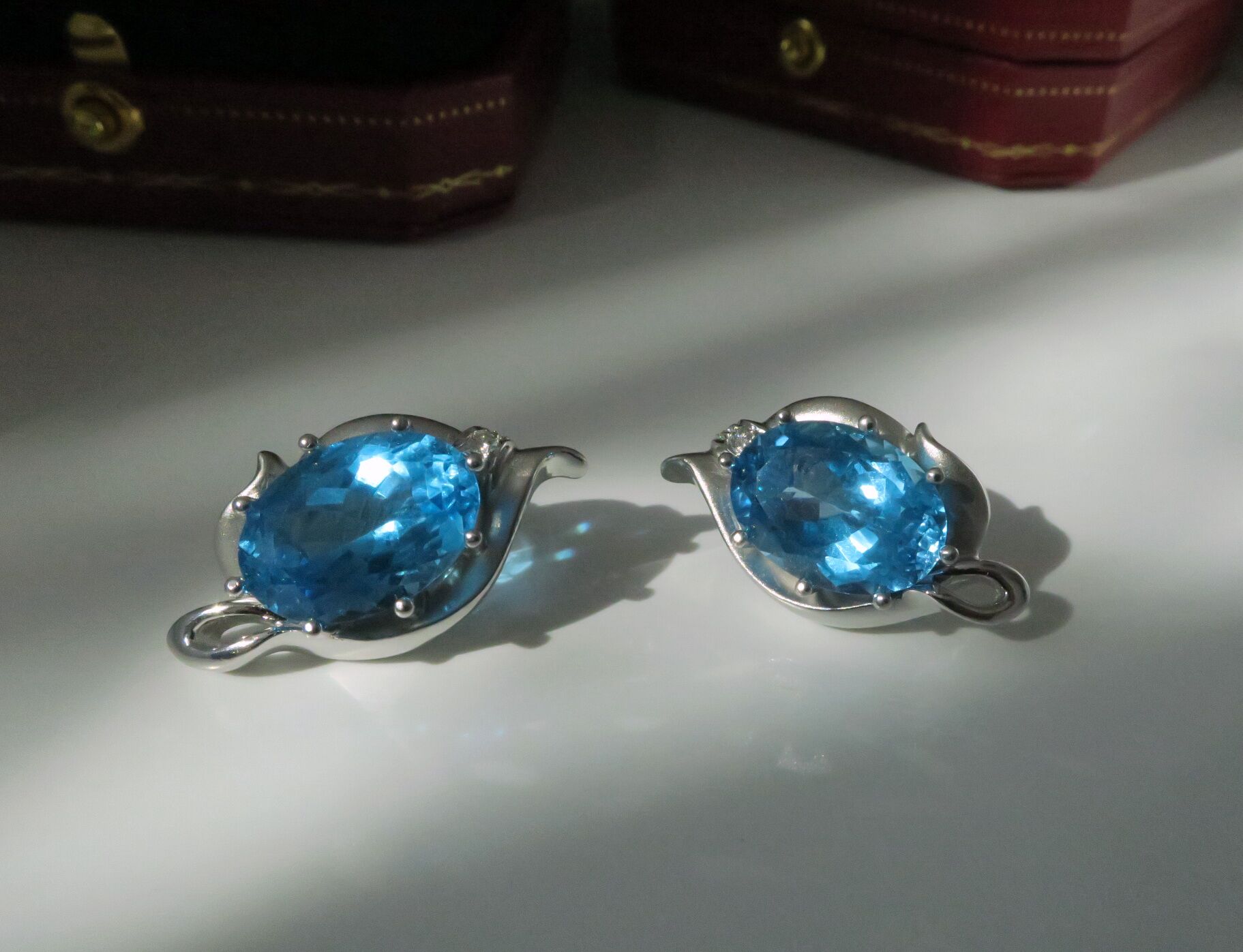 天然 海藍寶石 耳環/耳飾 18K白金 極度搶眼 高貴不貴