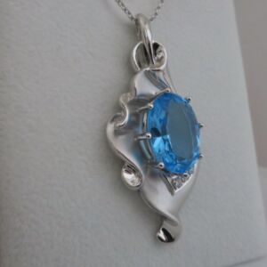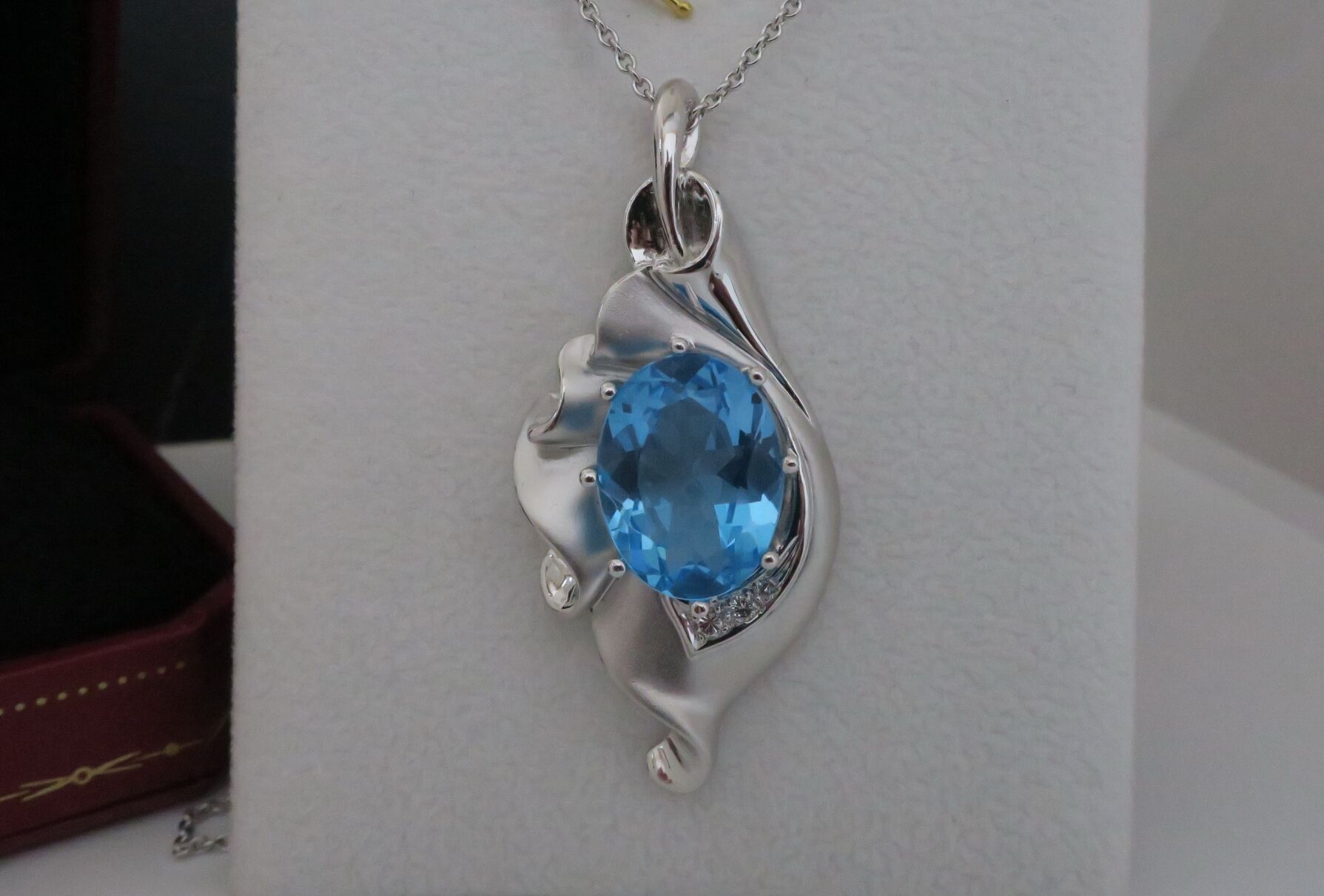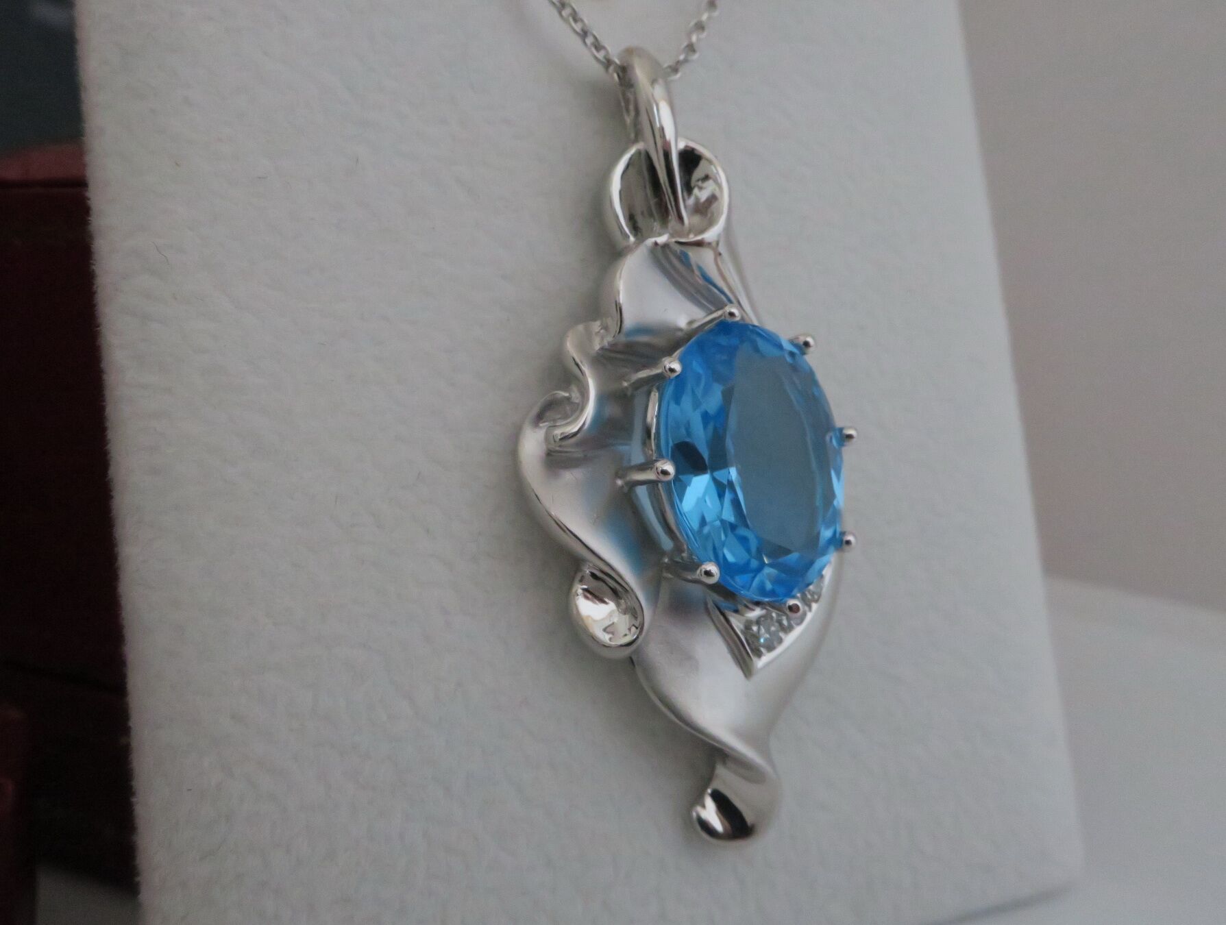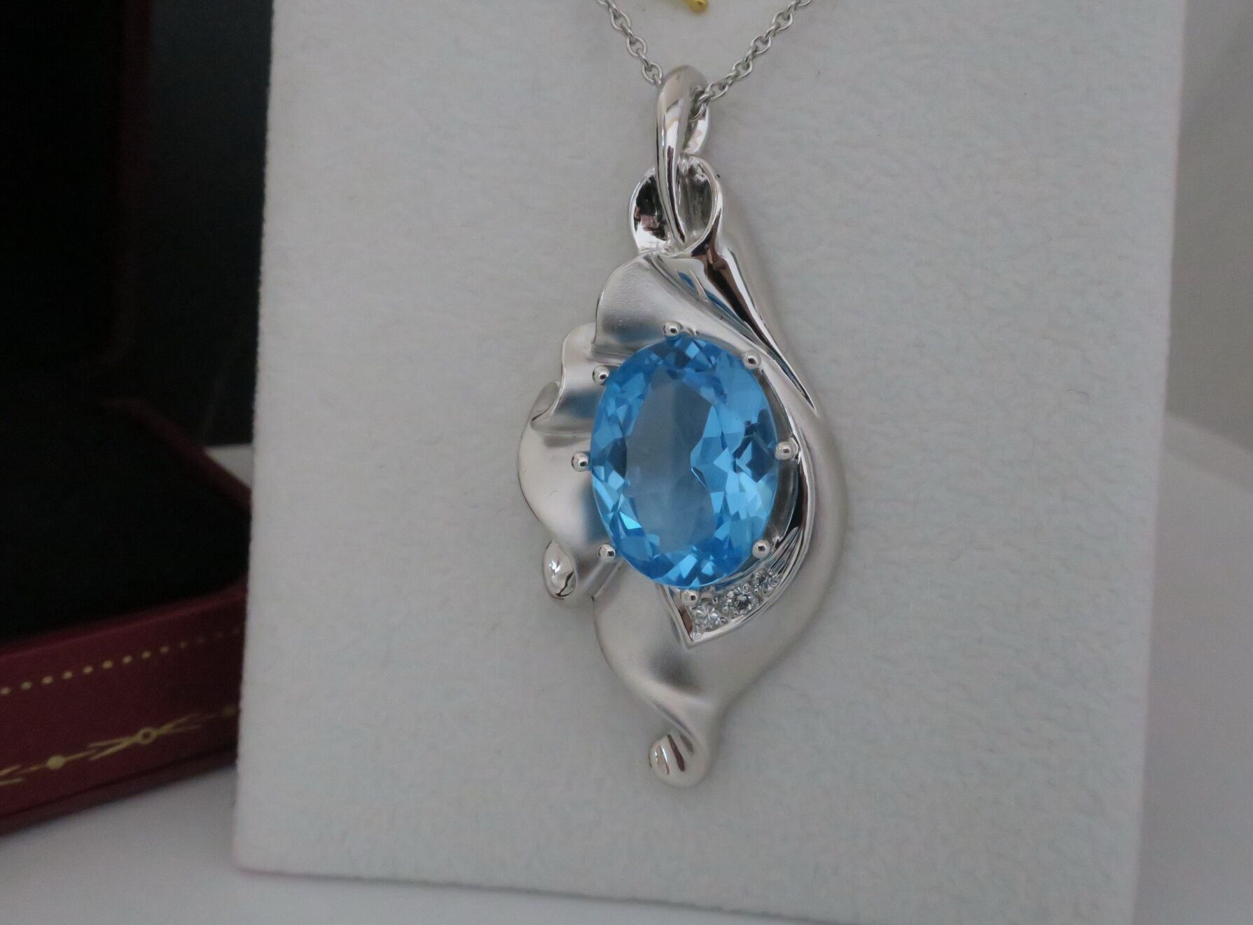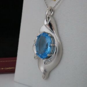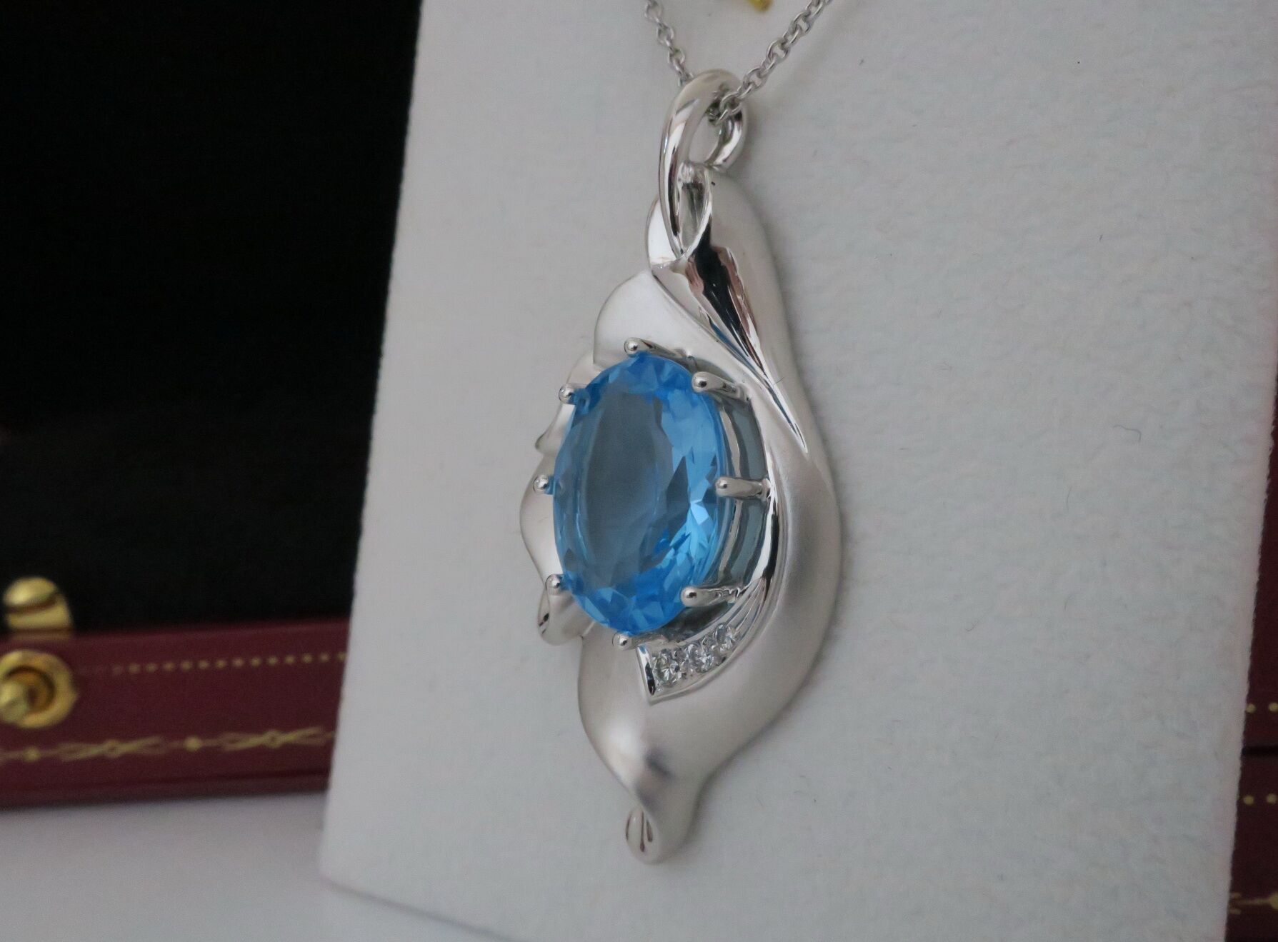 天然 海藍寶石 鑲鑽項鍊/墬子 18K白金 深海貝殼包覆 極度搶眼 高貴不貴
