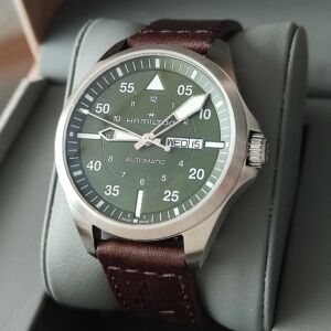 漢米爾頓 全新 卡其航空 大錶徑42mm 橄欖綠色面盤 自動上鍊~原廠盒單 2025AD