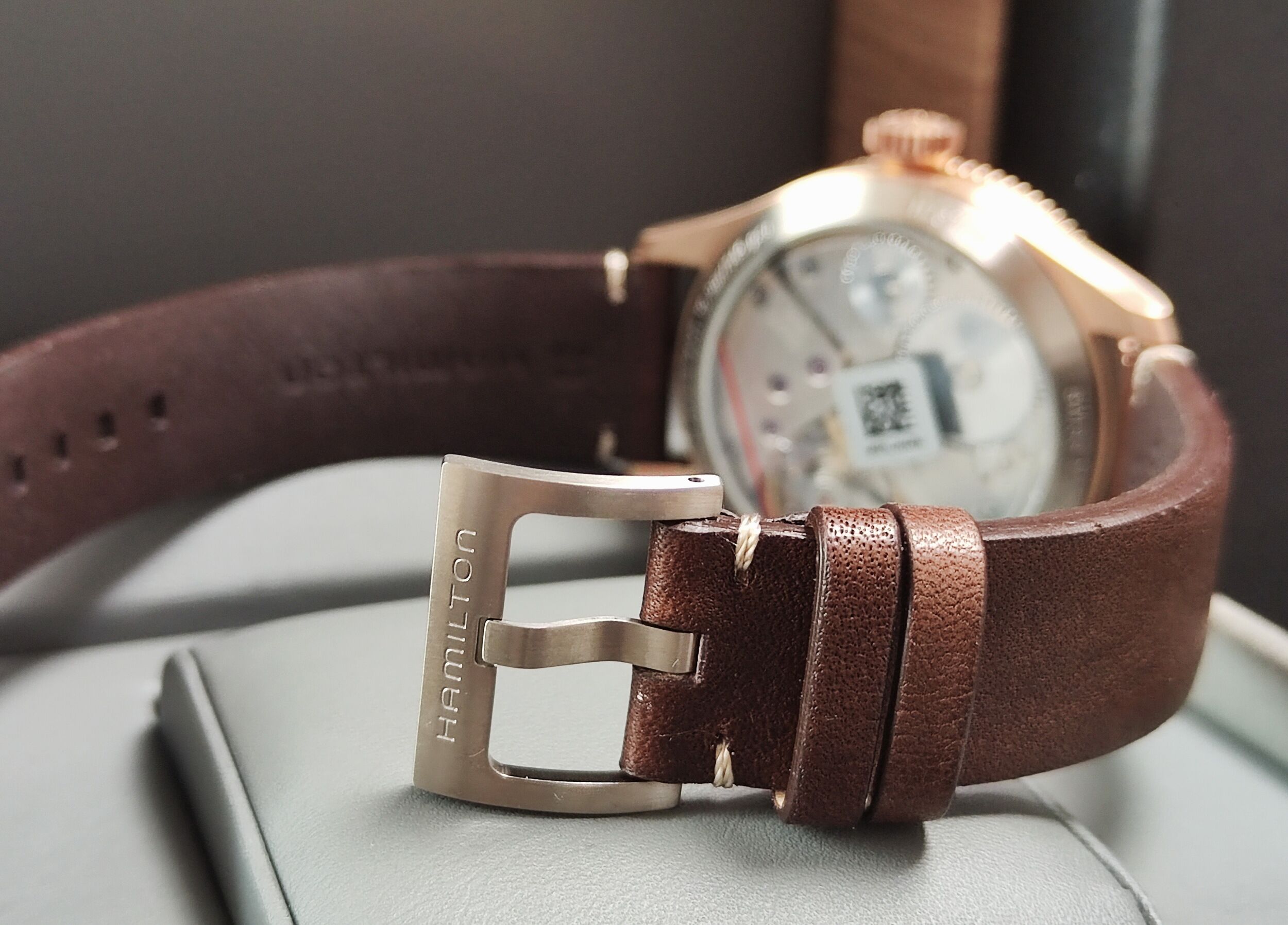 透明底蓋設計 原廠棕色皮錶帶 原廠錶扣
