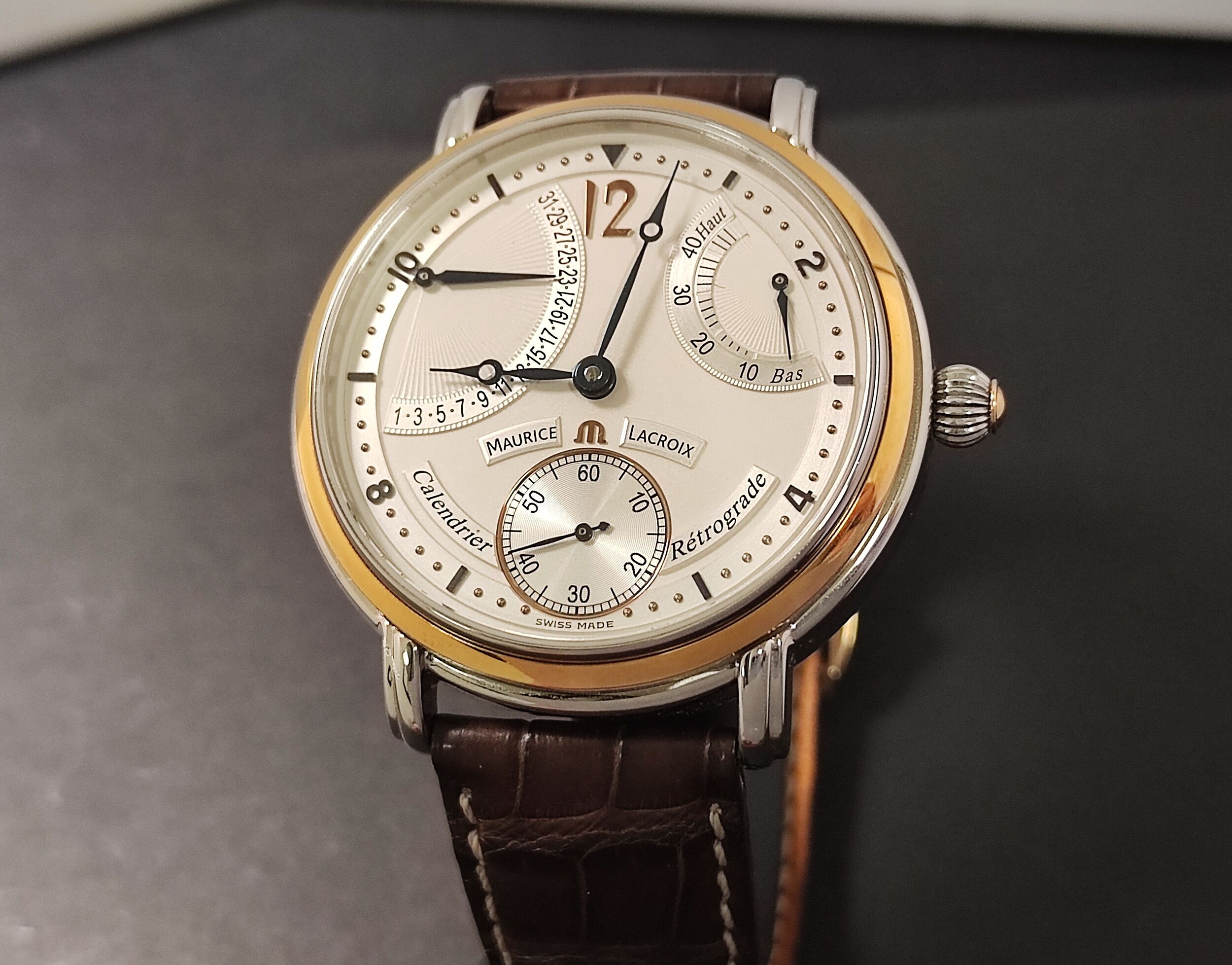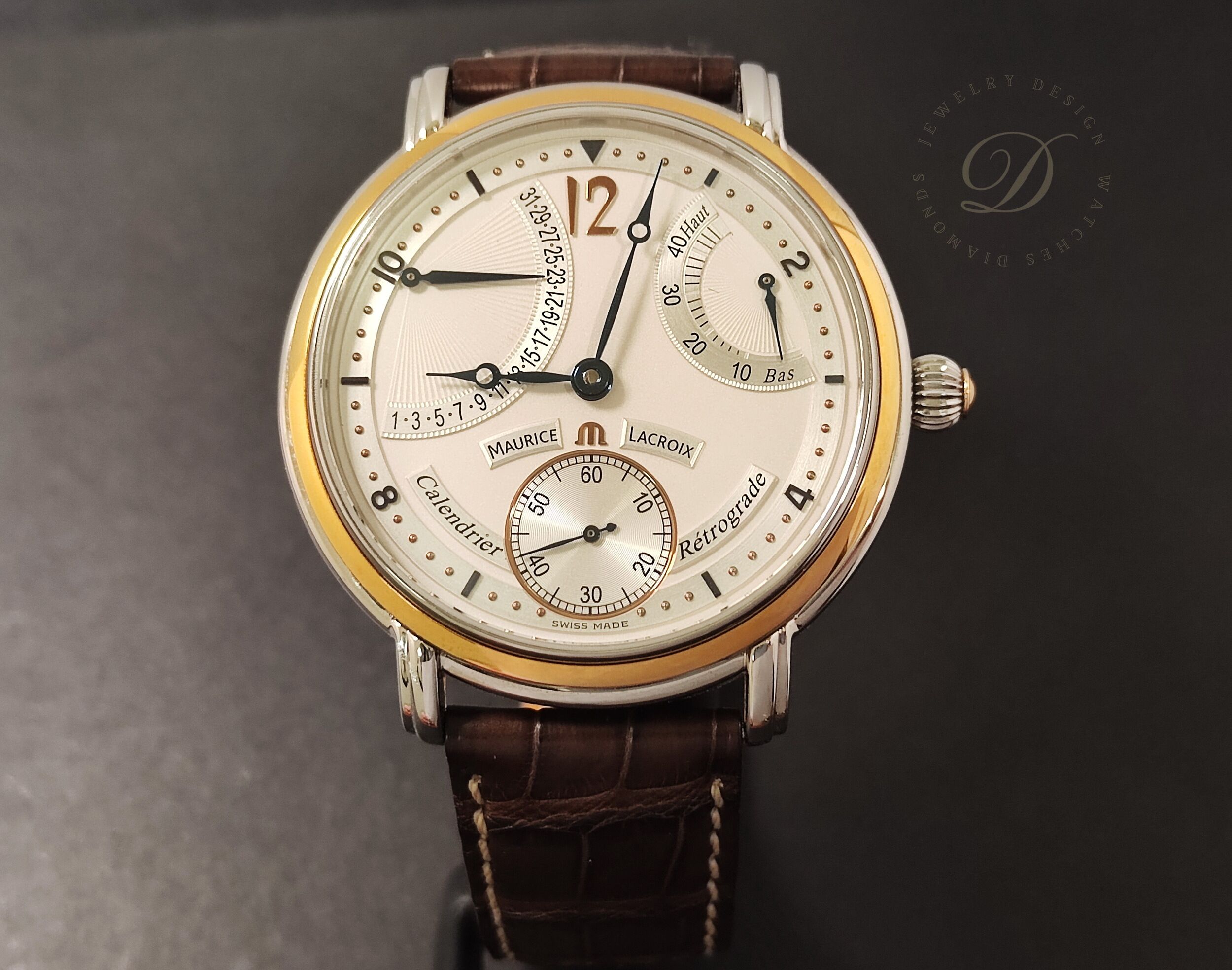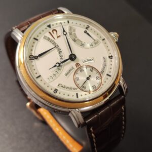 艾美 逆跳面盤 黃K金錶圈 大錶徑43mm 手動上鍊 動能顯示~原廠盒單 MAURICE LACROIX