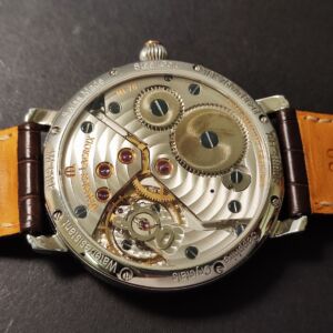 手動上鍊機芯 銀白色面盤 時間 逆跳日期 動能儲存顯示 獨立小秒盤