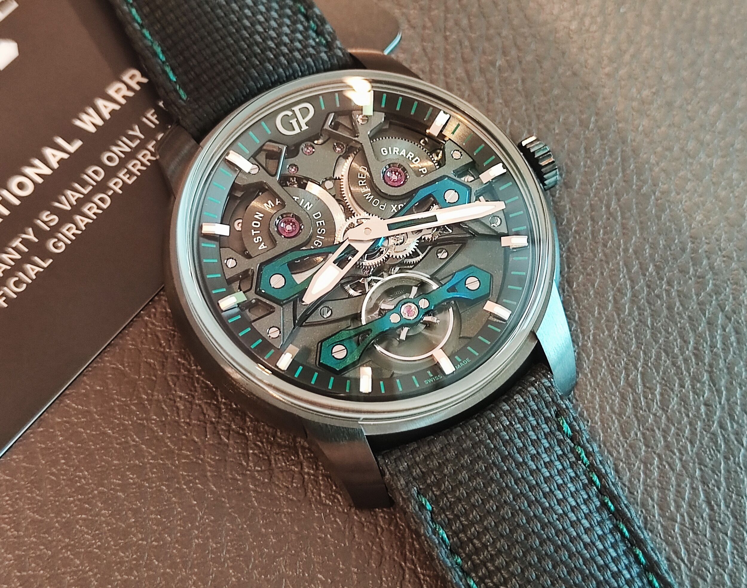 芝柏 GP 全新 Aston Martin 雙飛橋 聯名款 鈦金屬 大錶徑45mm 自動上鍊 鏤空面盤 全球限量~原廠盒單 金橋系列