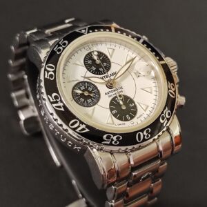 自動上鍊機芯 白色面盤 黑色計時錶圈 時間 日期顯示 計時碼錶功能