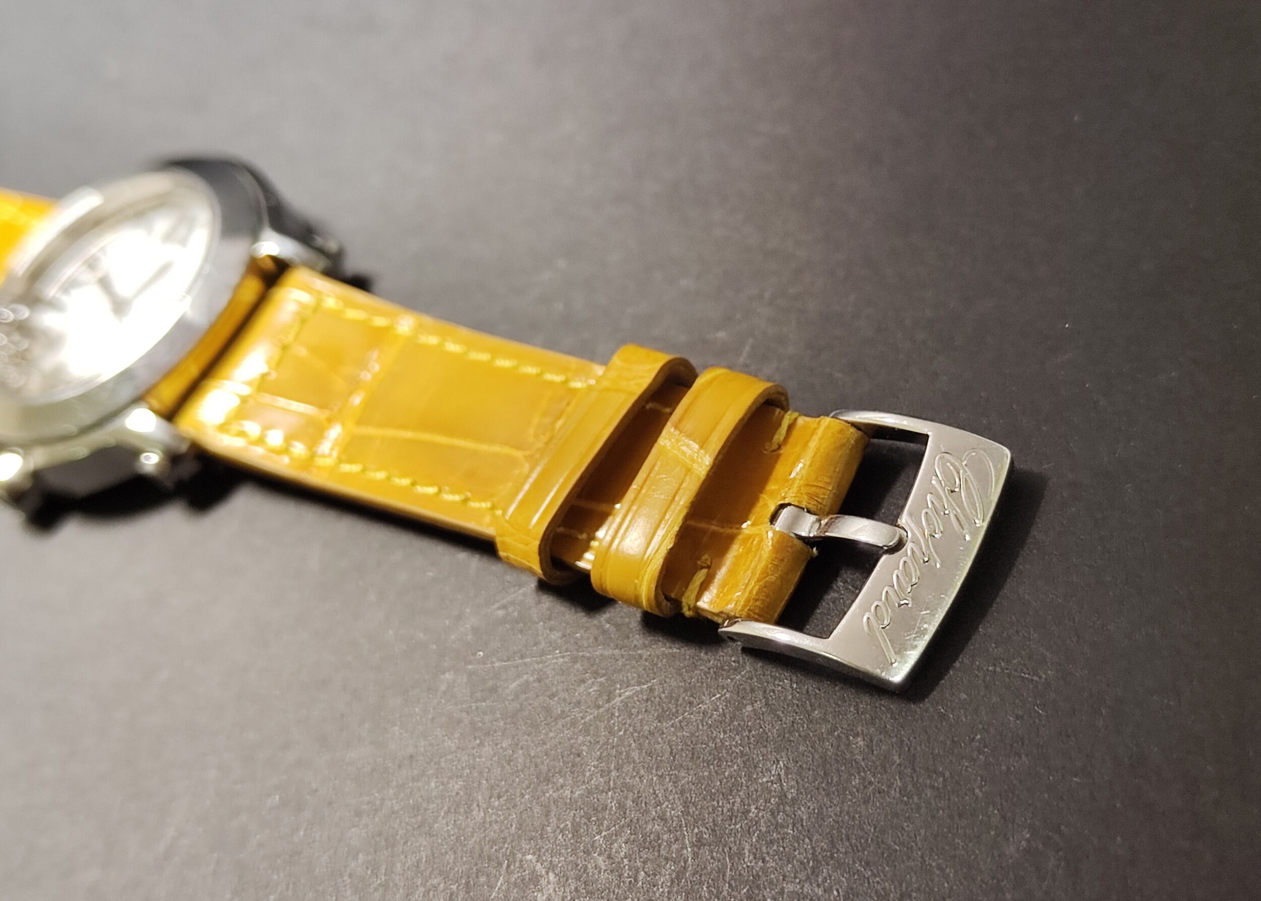 • 代用鵝黃色鱷魚皮錶帶 原廠ㄇ字扣