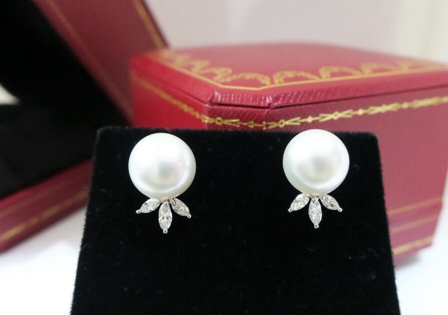 天然鑽石 南洋珍珠耳環