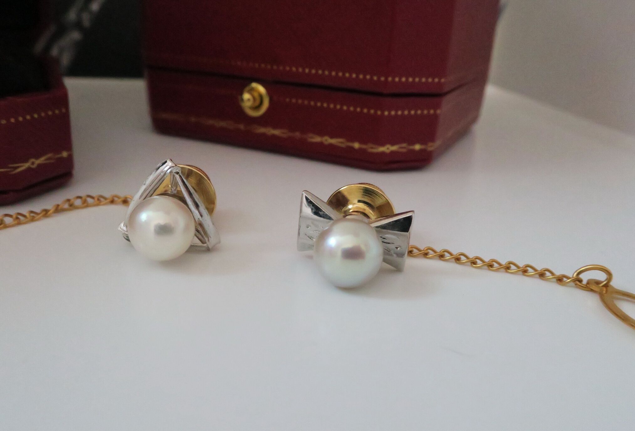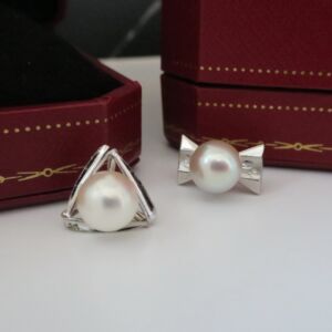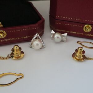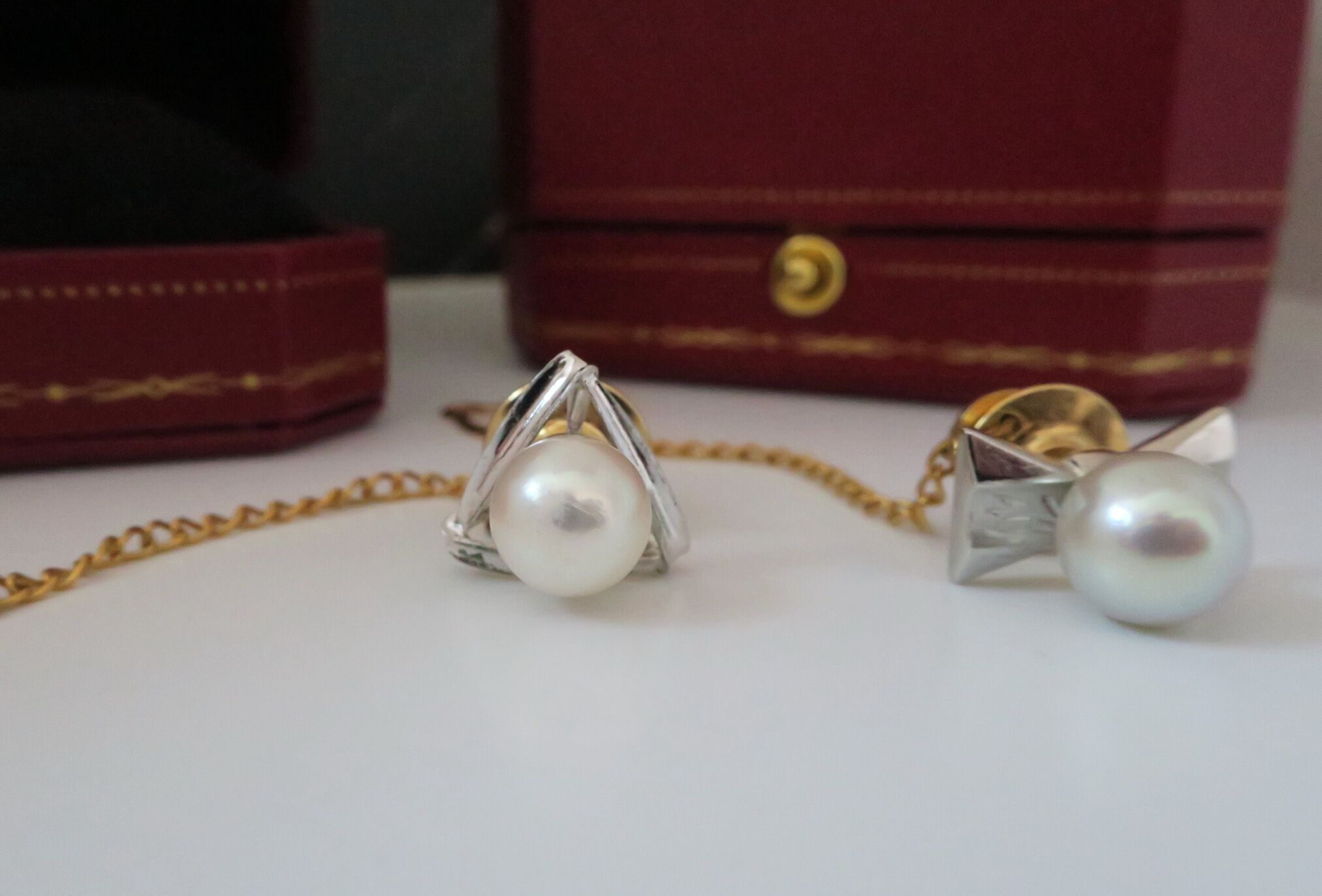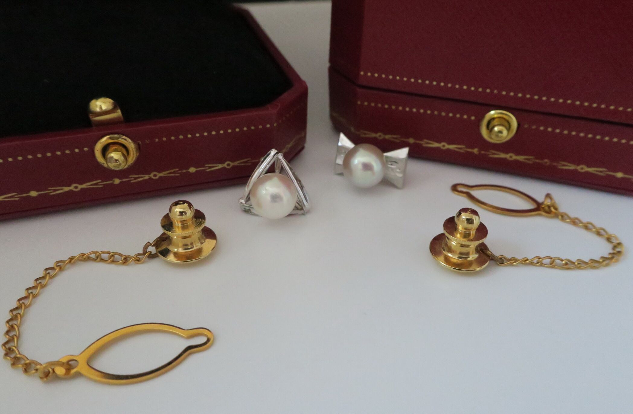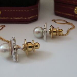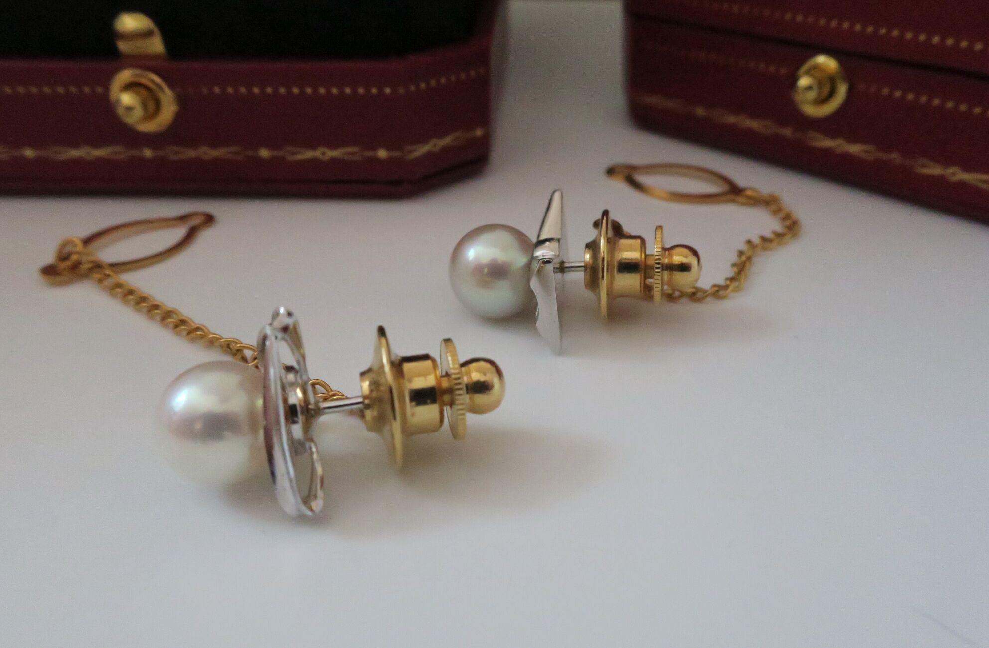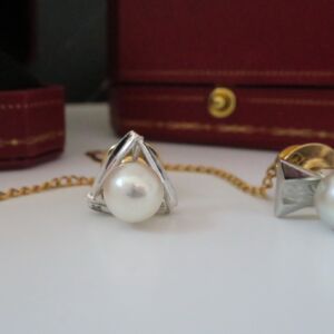 傳統領帶夾 領帶別飾 領帶針 純銀+18K金+珍珠 絕版藏品