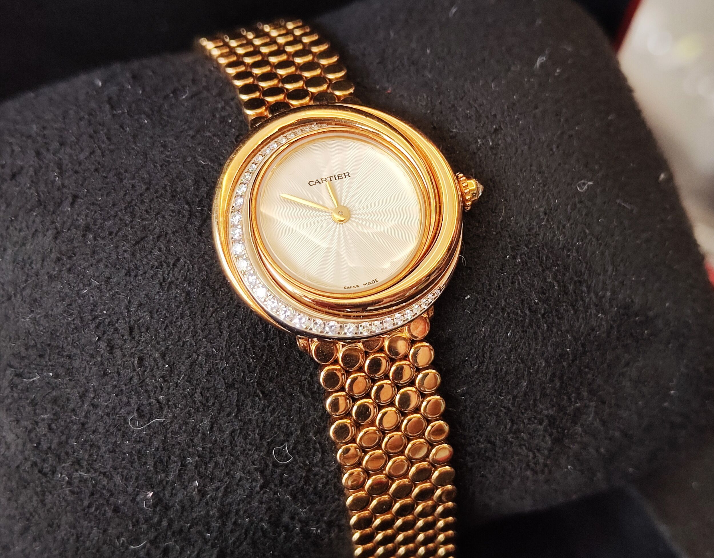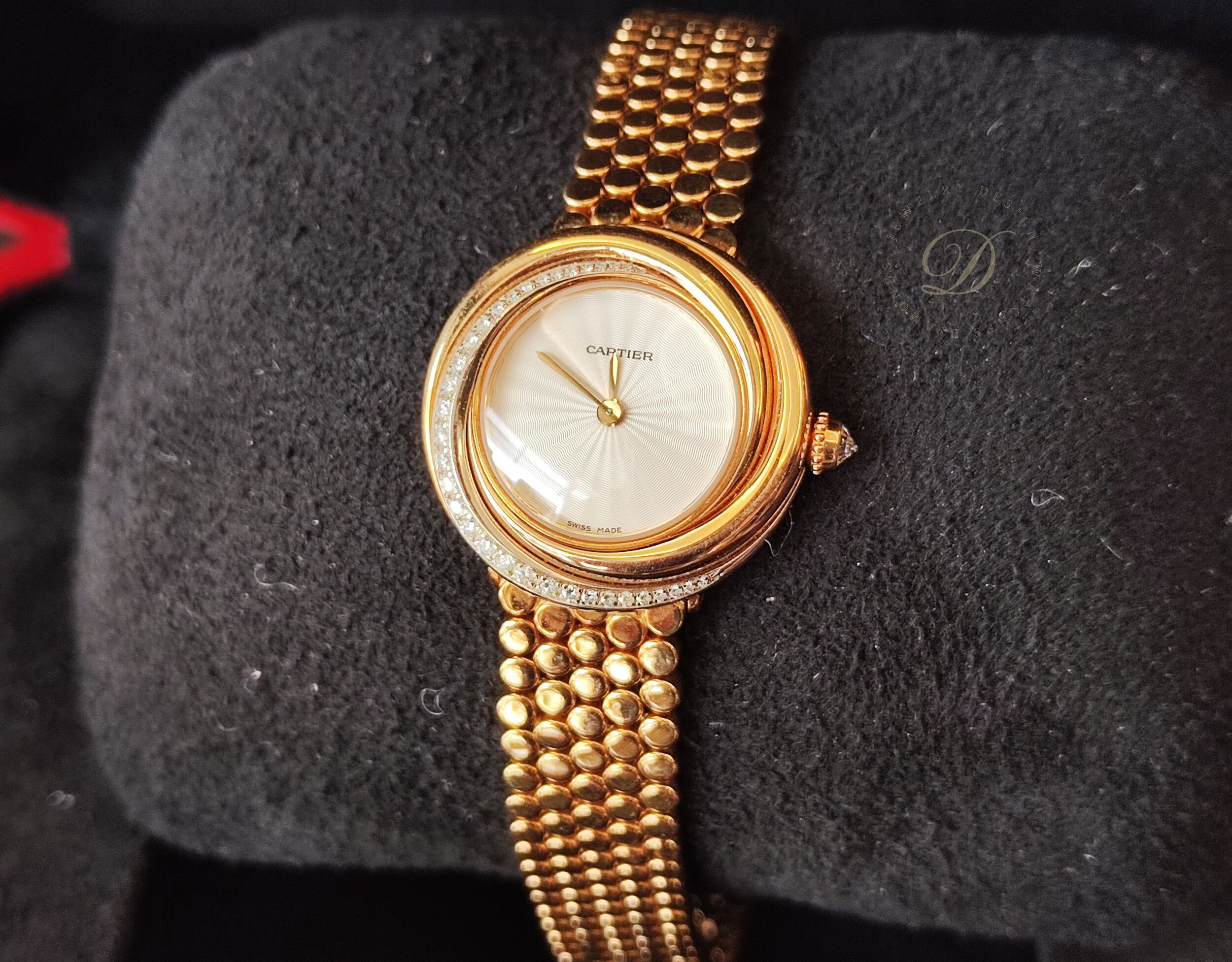 CARTIER 卡地亞 Trinity 2357 原鑲鑽錶 18K金 錶徑27mm 石英機芯 三環錶~原廠錶盒