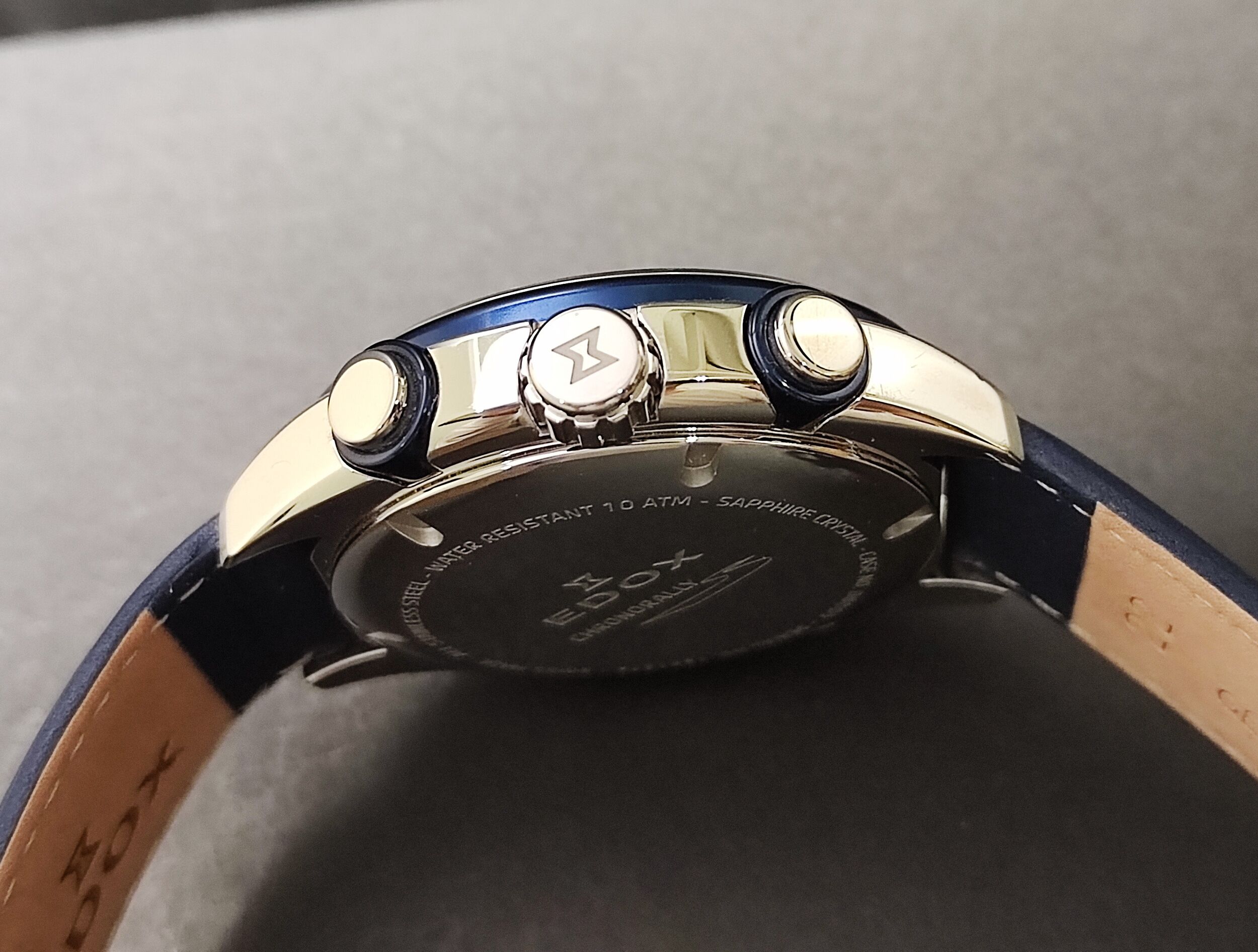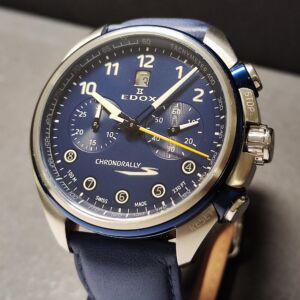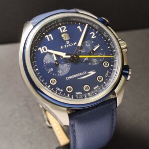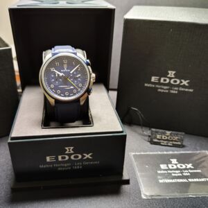 EDOX 伊度錶 藍色面盤 大錶徑43mm 自動上鍊 計時功能~原廠盒單