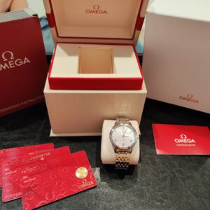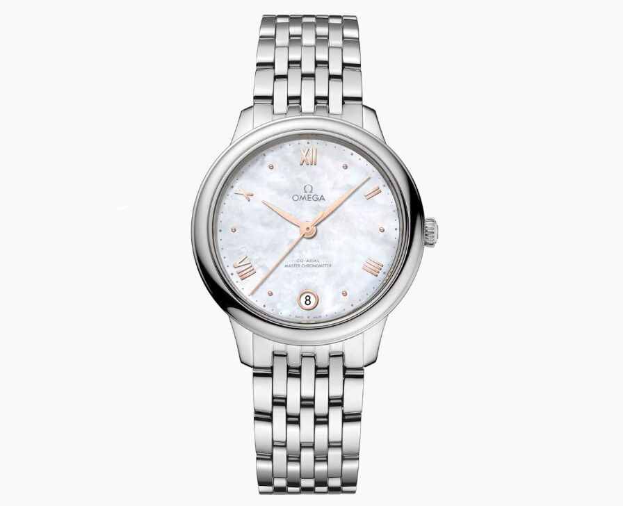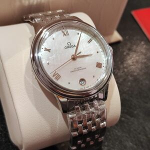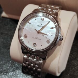 OMEGA 全新 女用 碟飛系列 錶徑34mm 自動上鍊 白色珍珠母貝面盤~原廠盒單 國內AD
